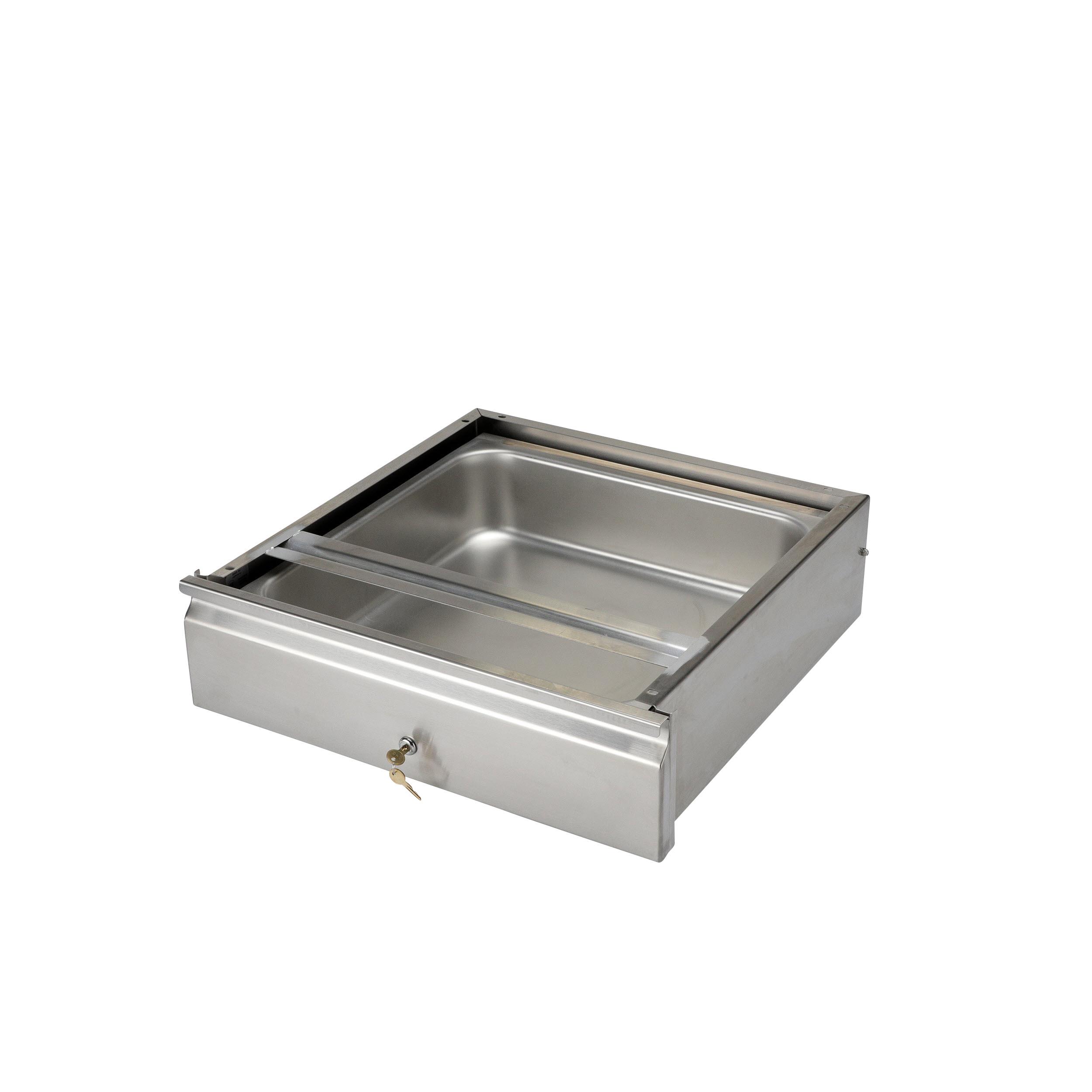 - 20" W x 20" L x 5" D Stainless Steel Economy Drawer Assembly with Cylinder Lock and Stainless Steel Pan