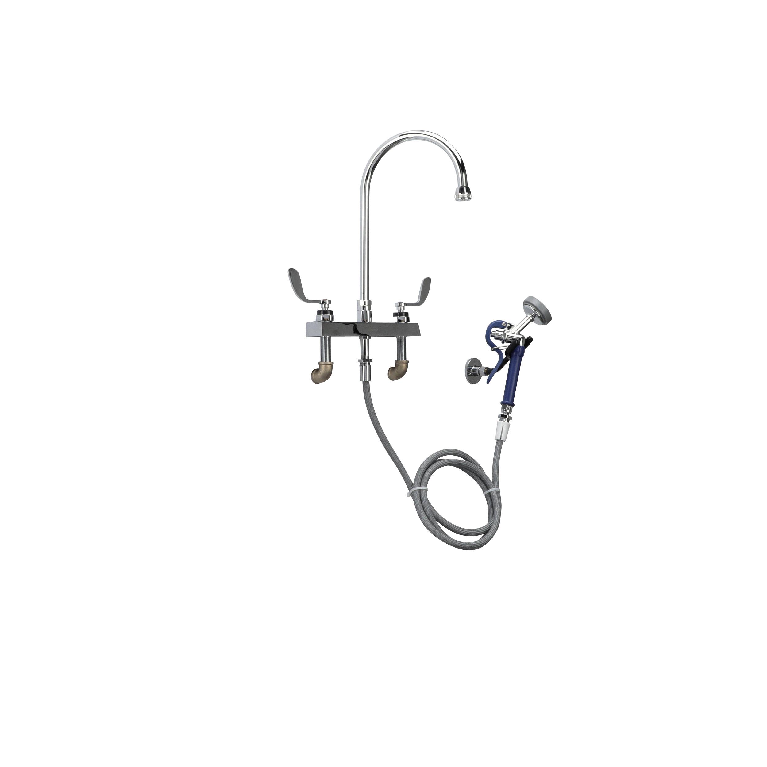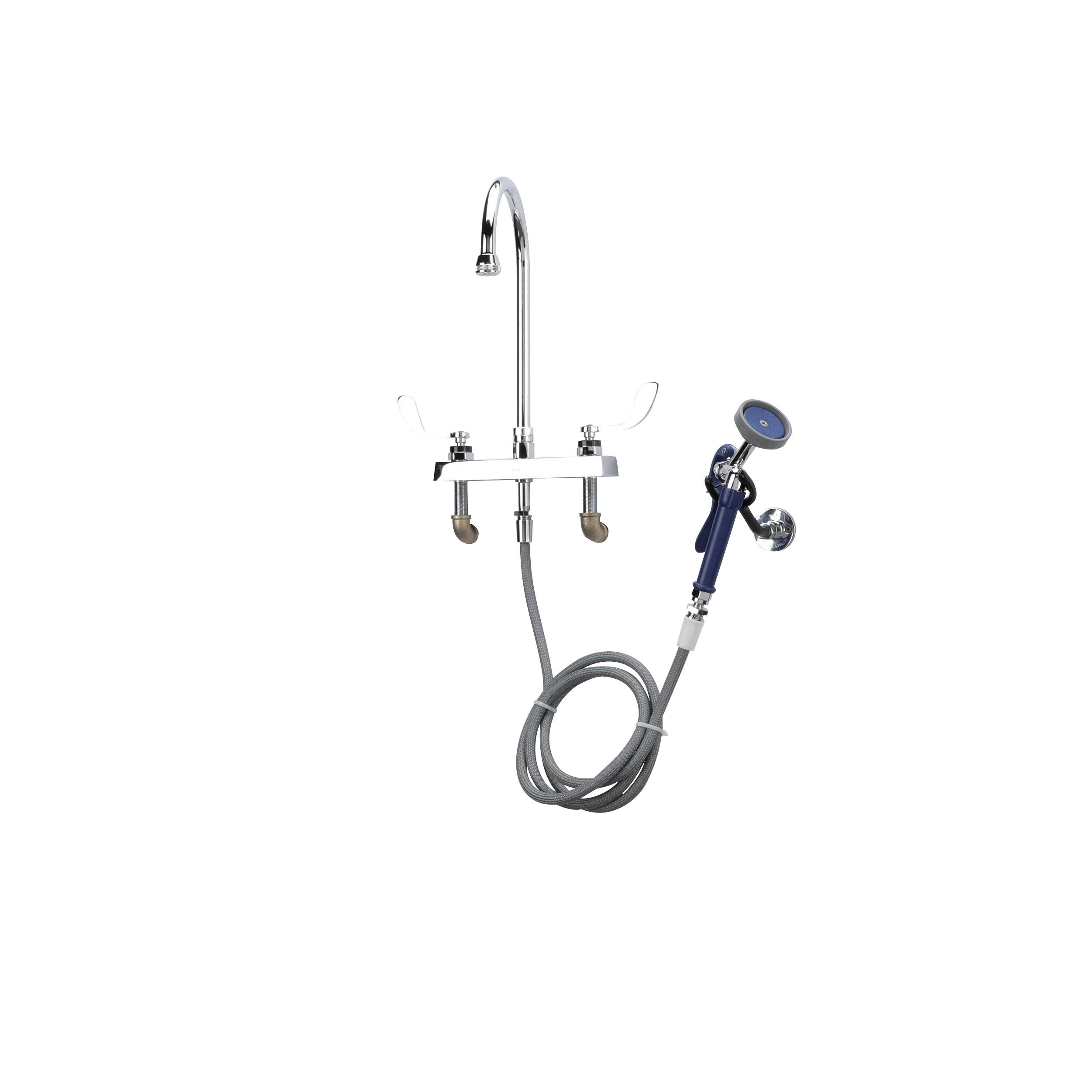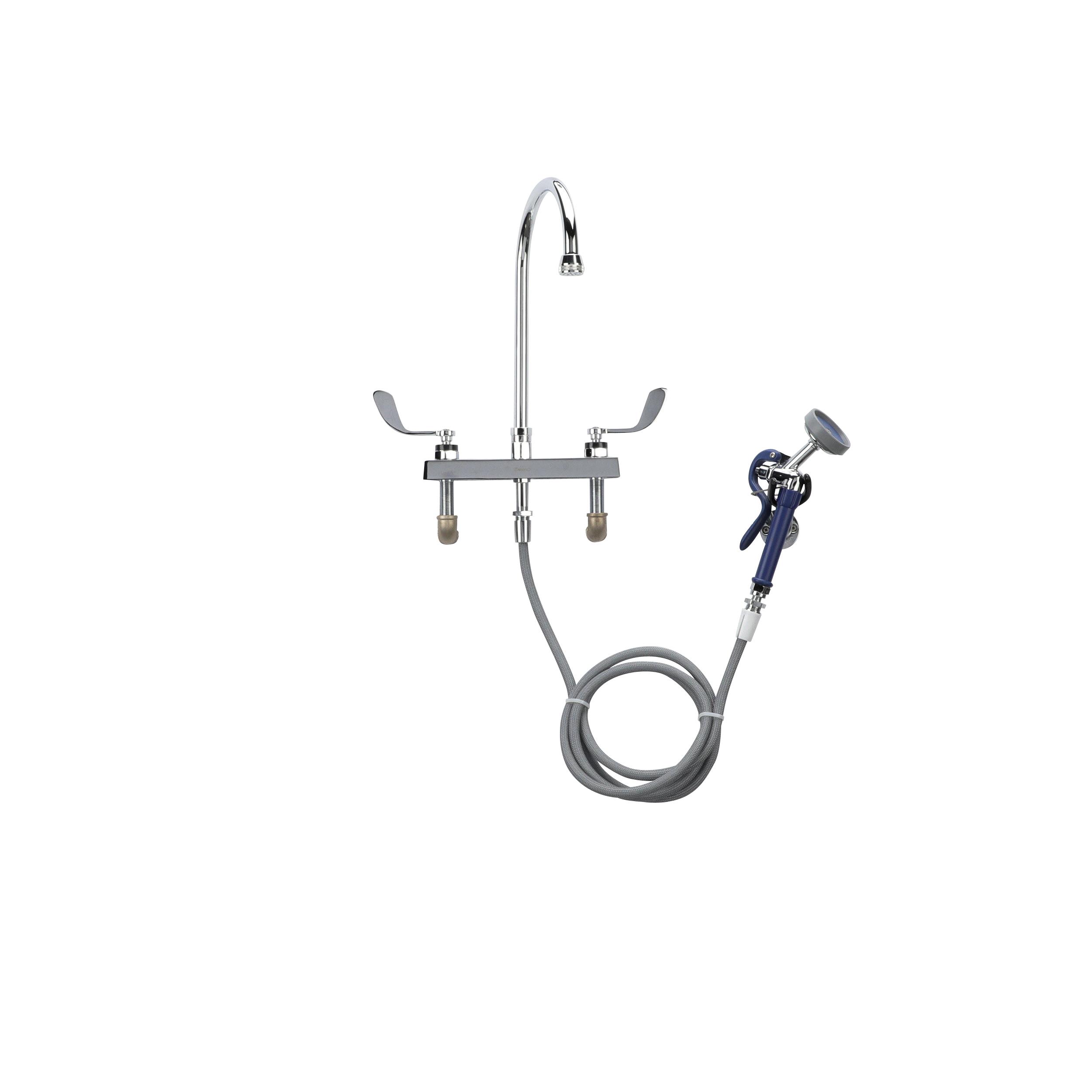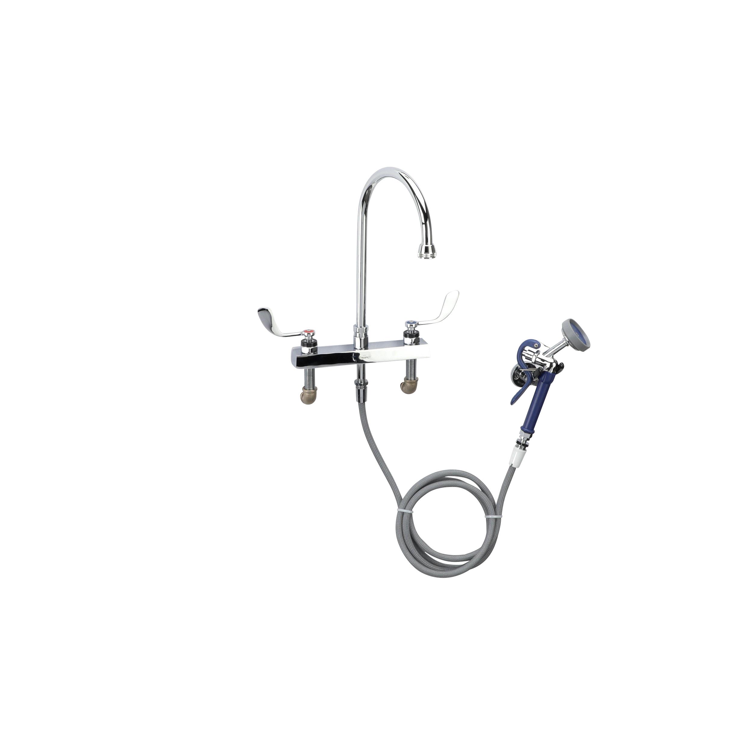 Encore® Adjustable Widespread Deck Mount Faucet with Rigid 6" Gooseneck Spout and 4" Wrist Blade Handles