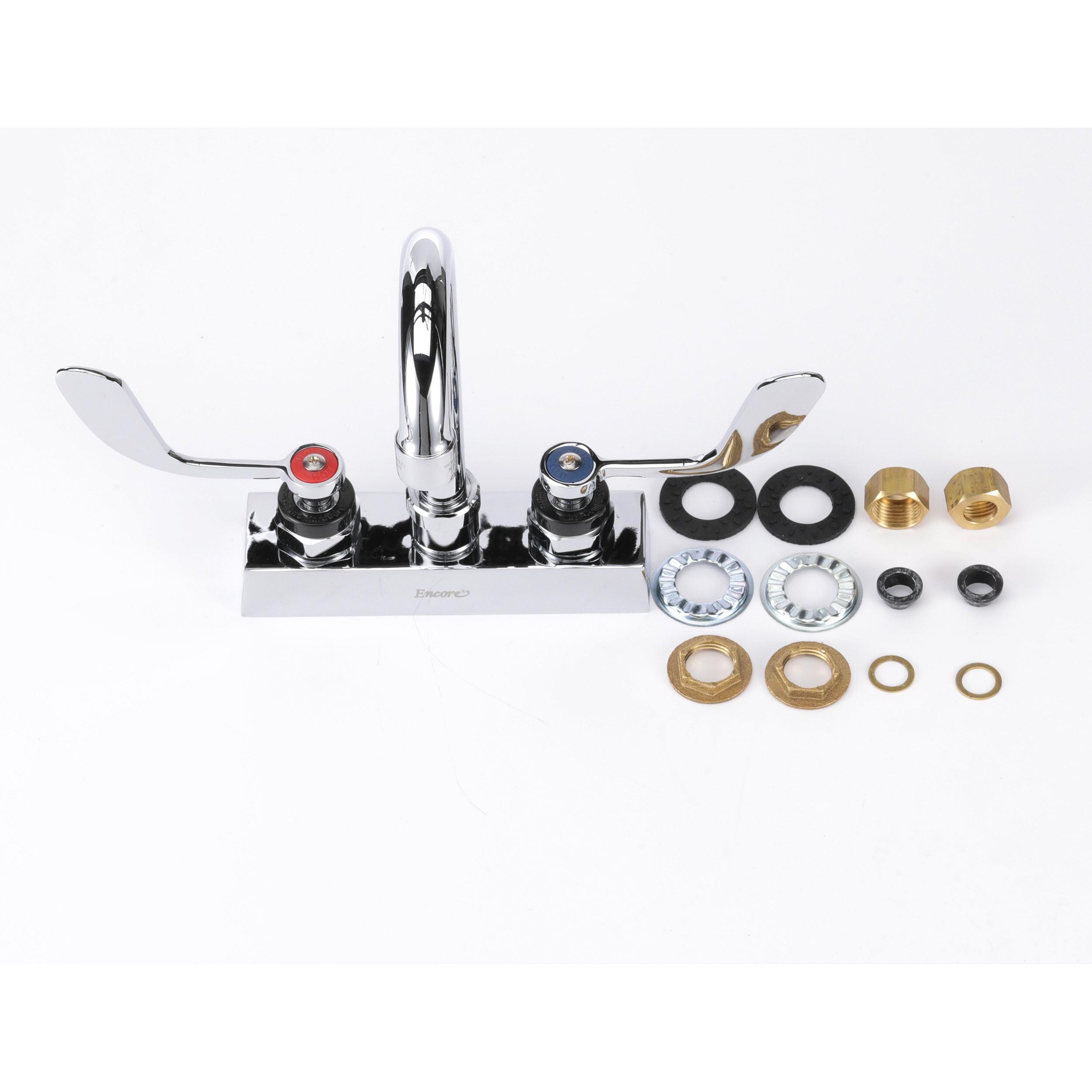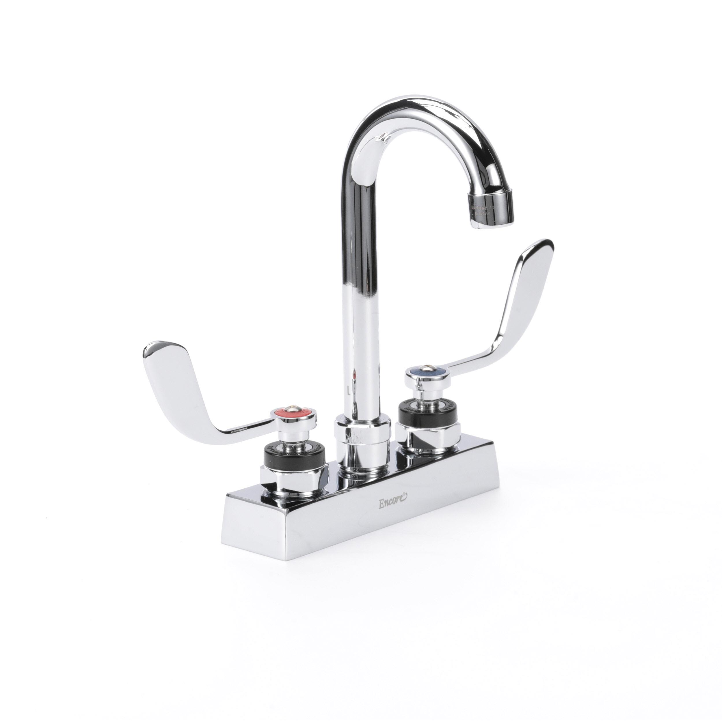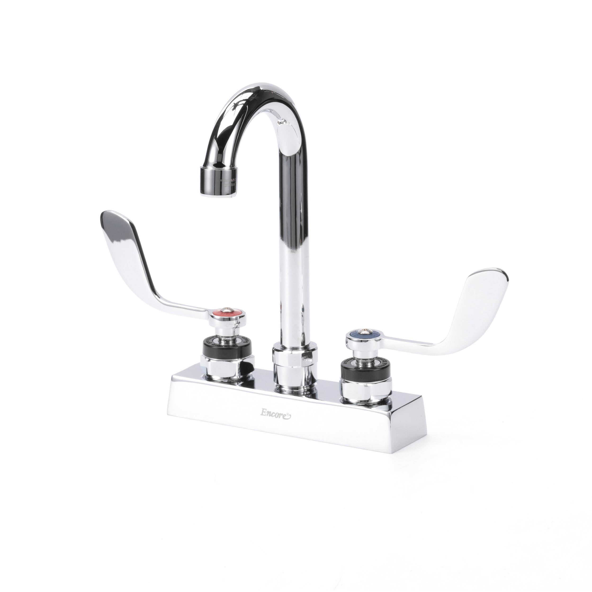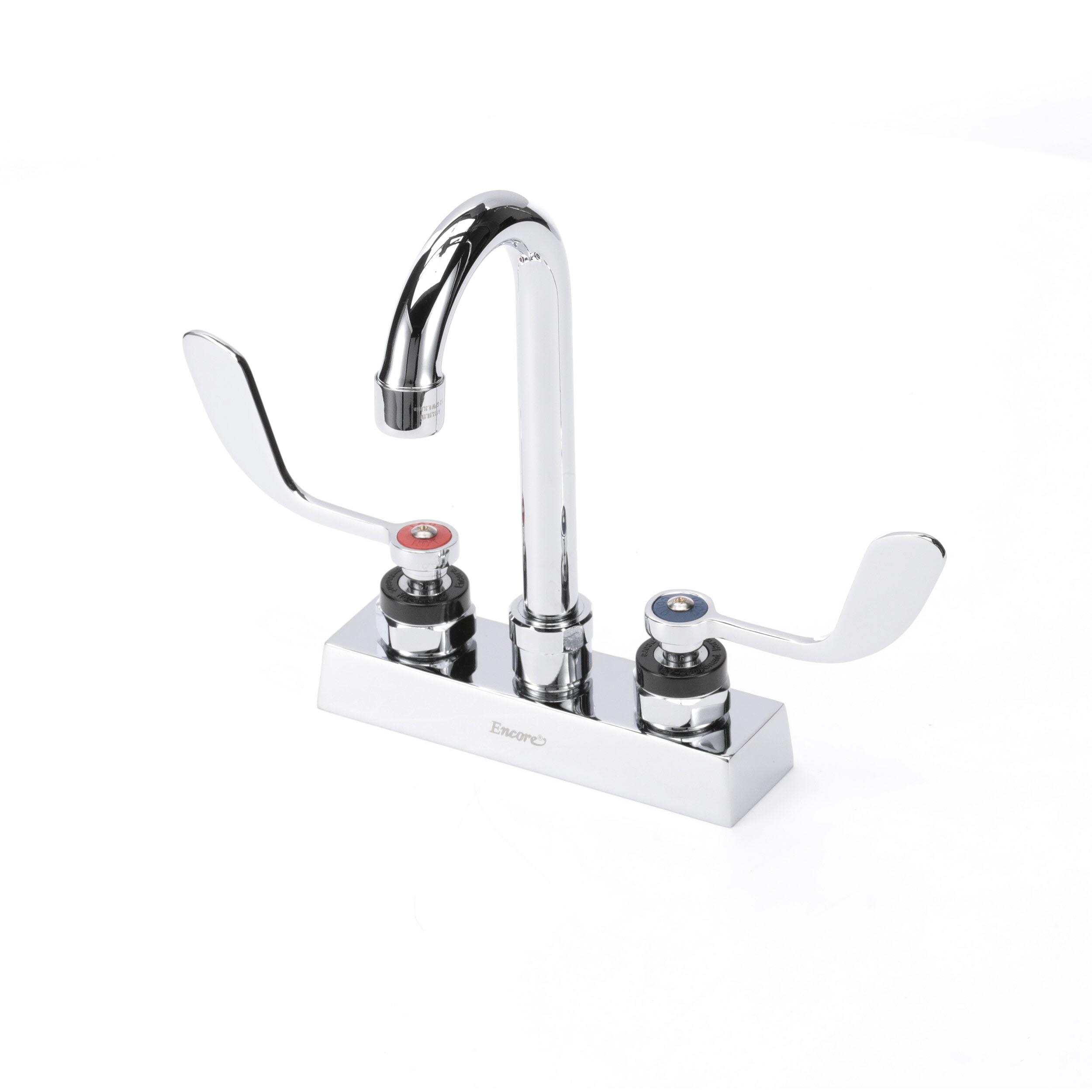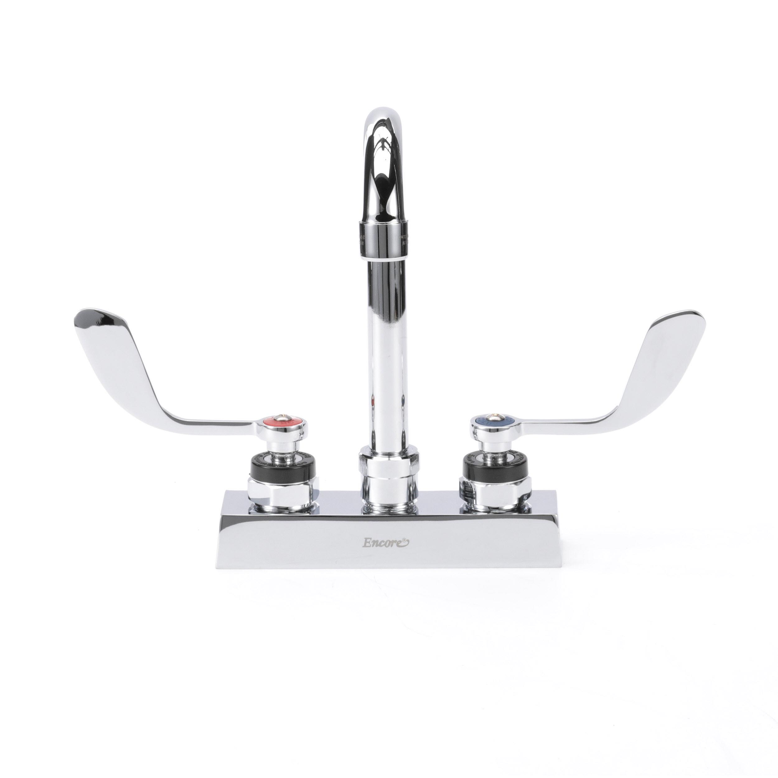 Encore 4" OC Deck Mount Faucet with 3-1/2" Rigid Gooseneck Spout and 4" Wrist Blade Handles