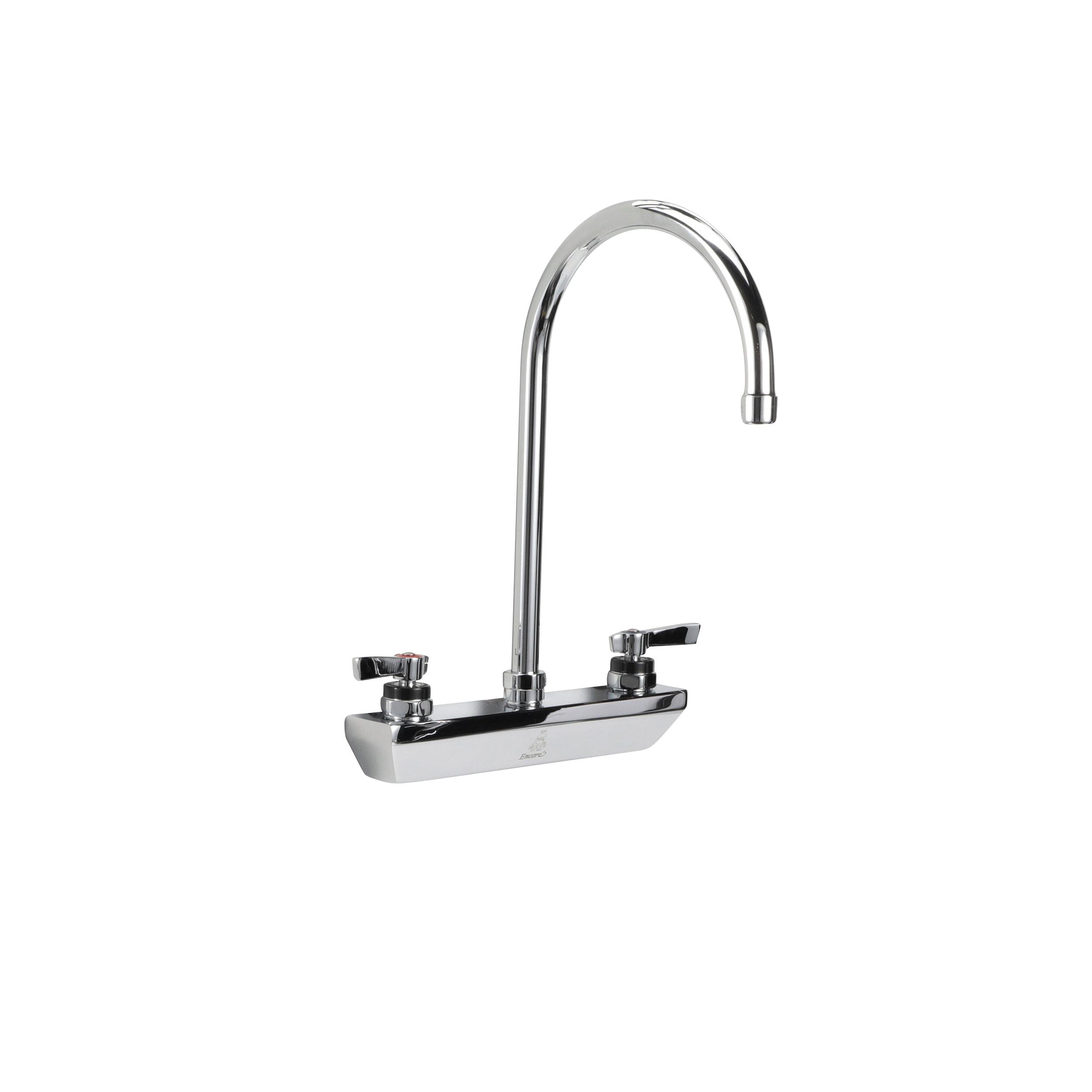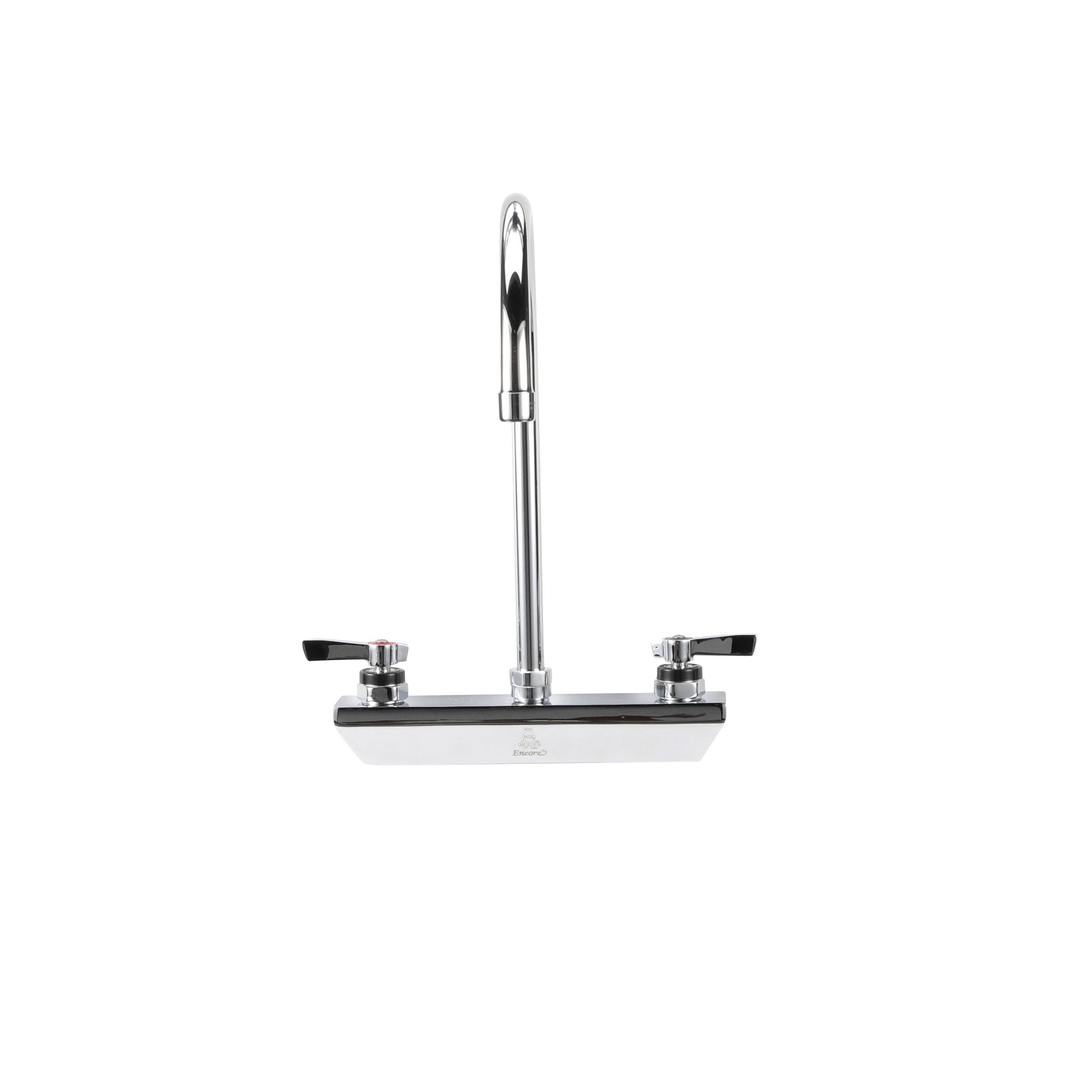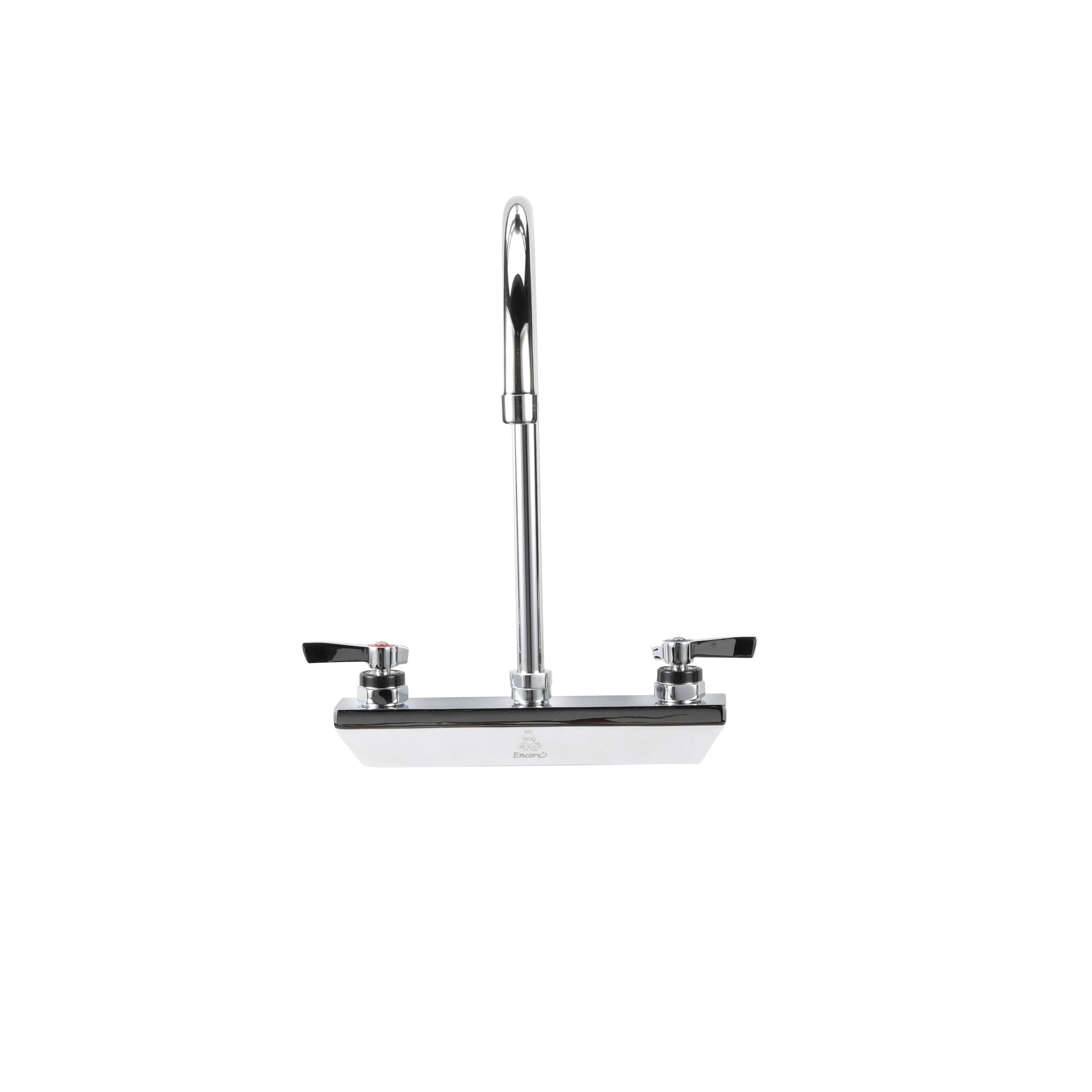Encore 8" OC Wall Mount Faucet with 8-1/2" Swivel Gooseneck Spout, Retail Packaging