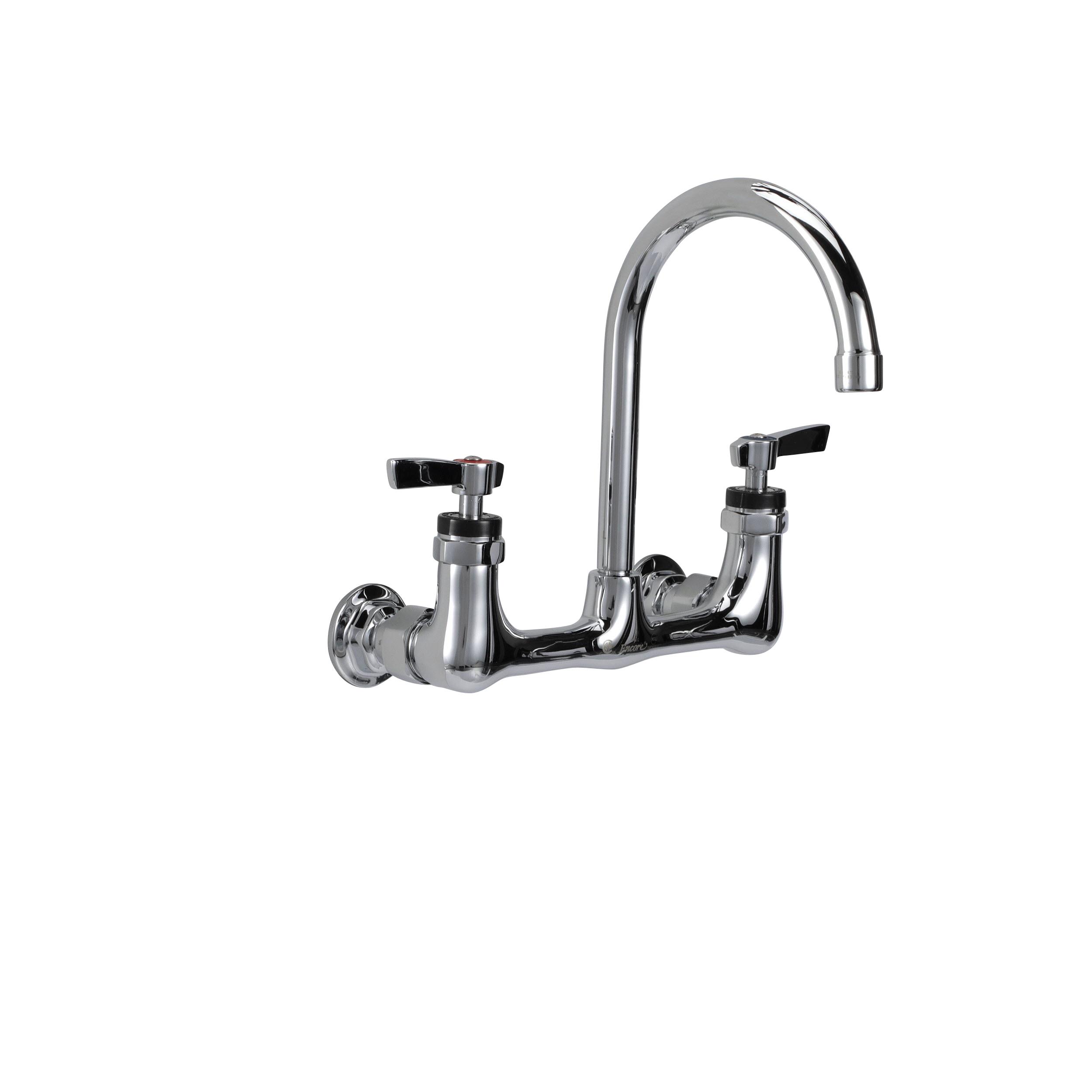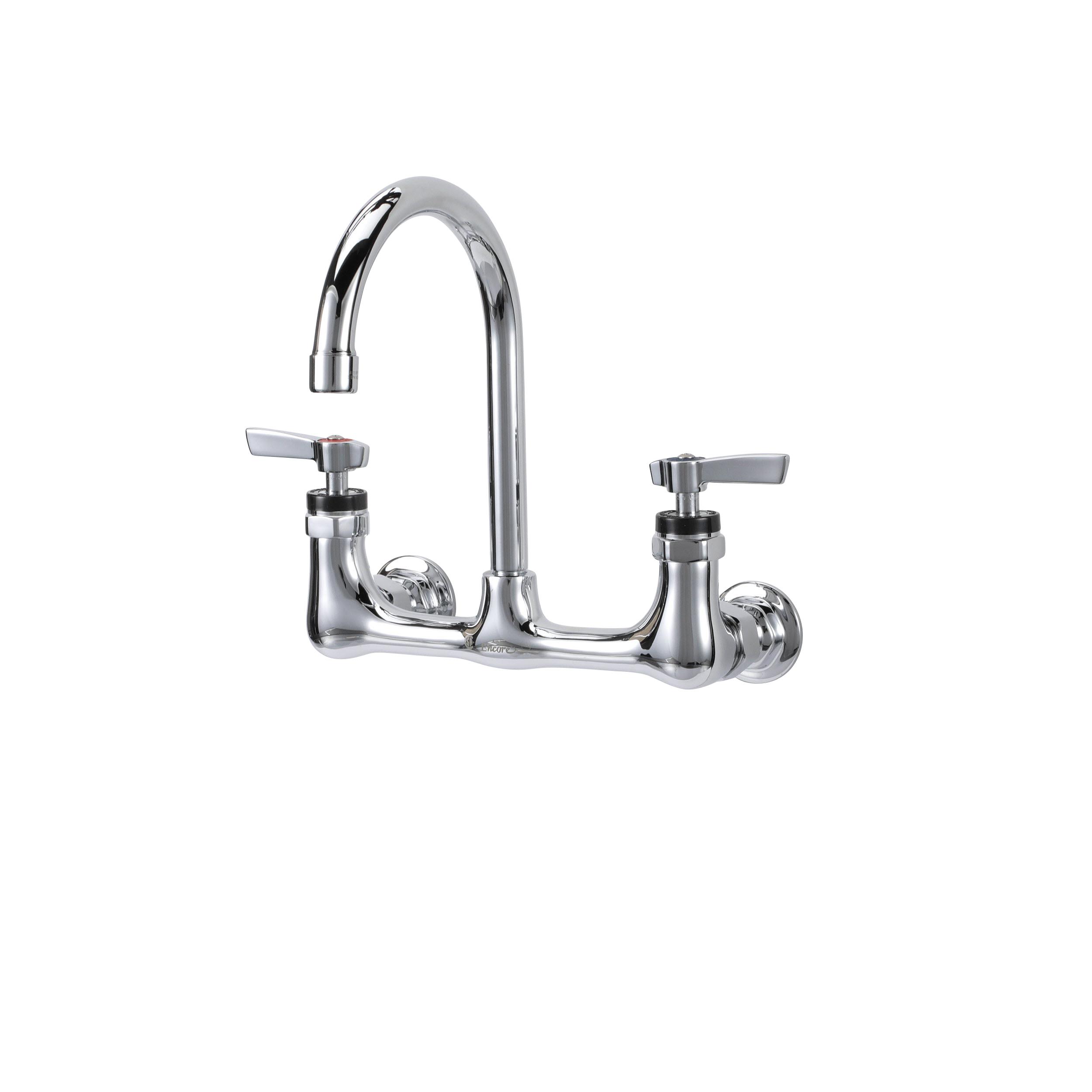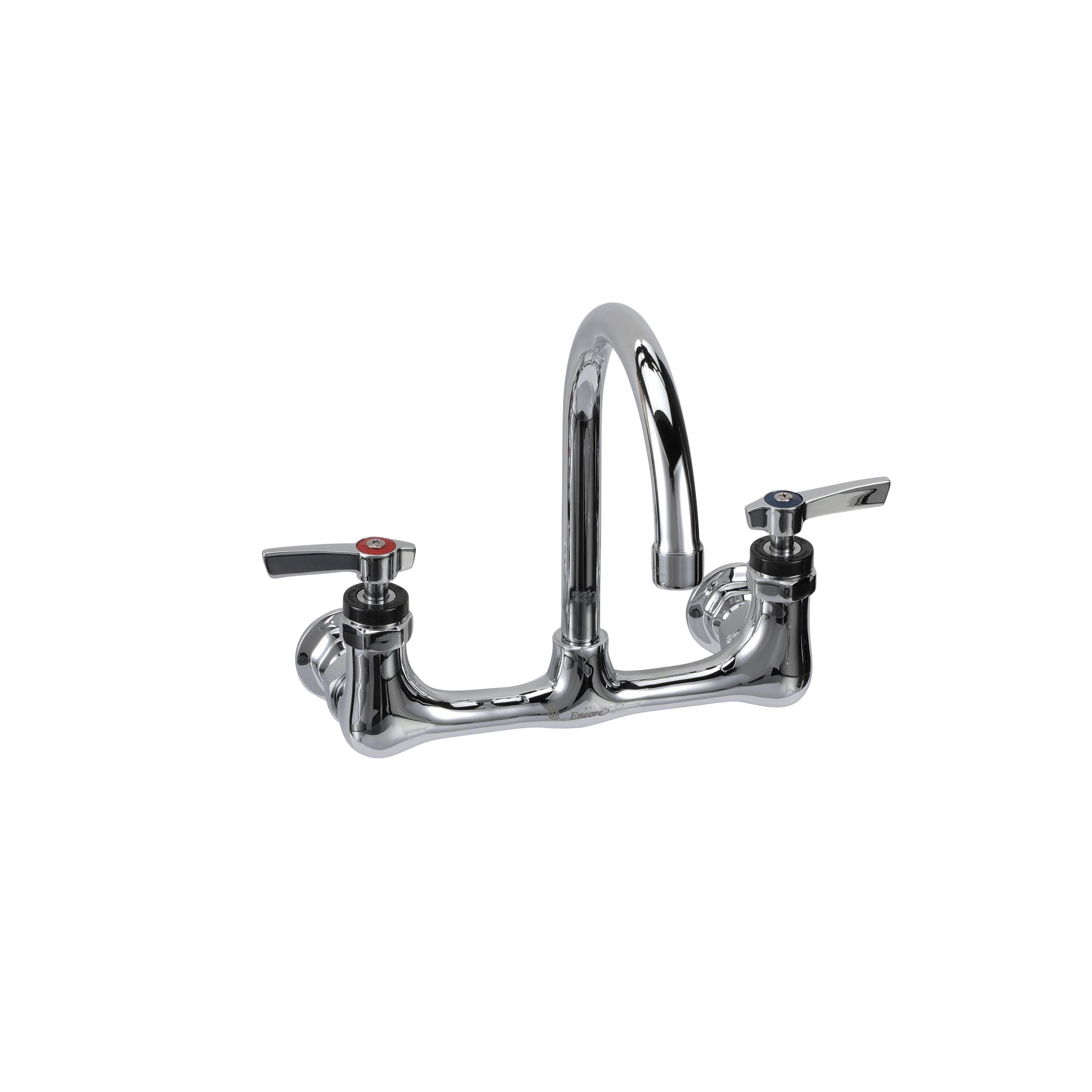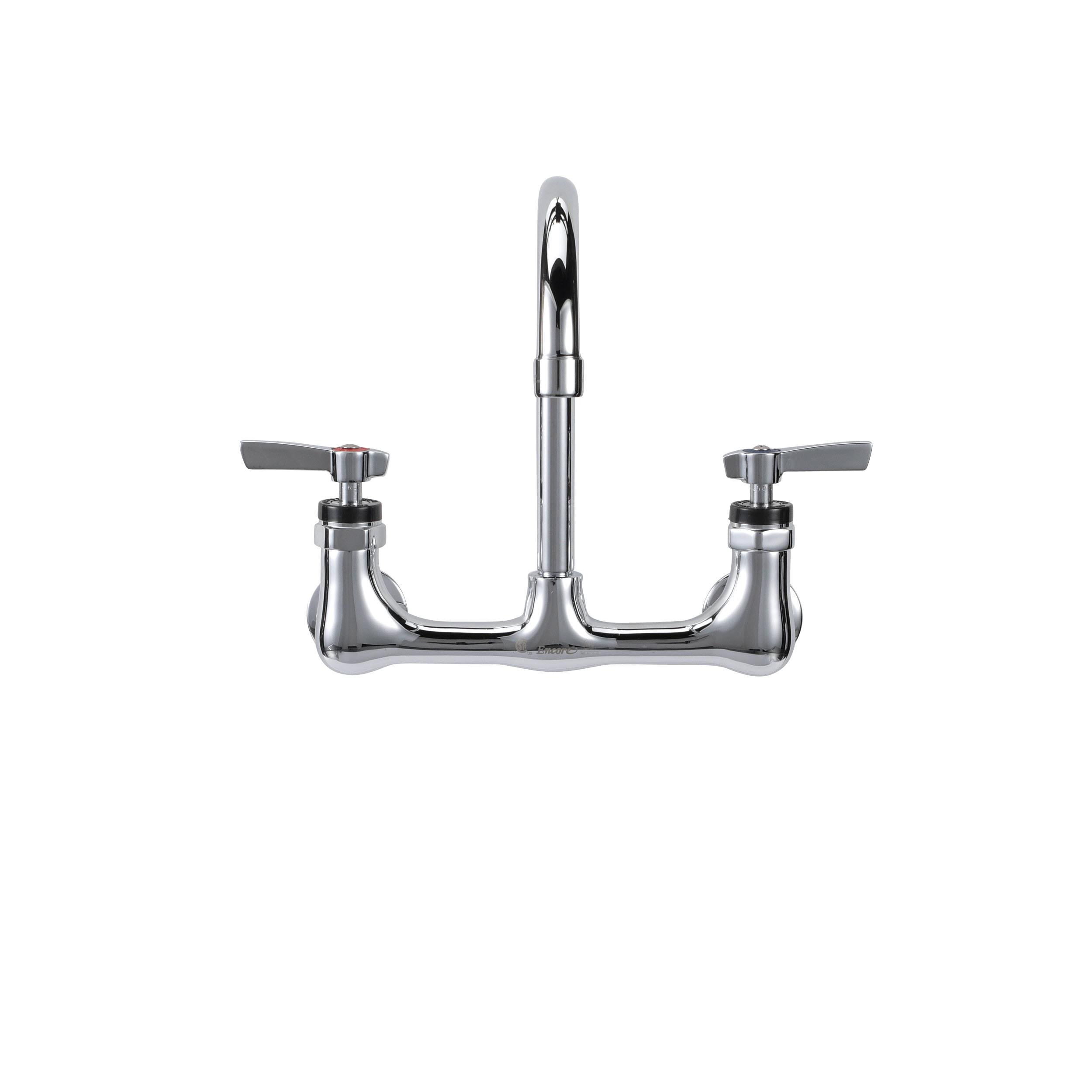 Encore® 8" OC. Brass Chrome Plated Wall Mount Faucet with 6-1/2" Rigid Gooseneck Spout