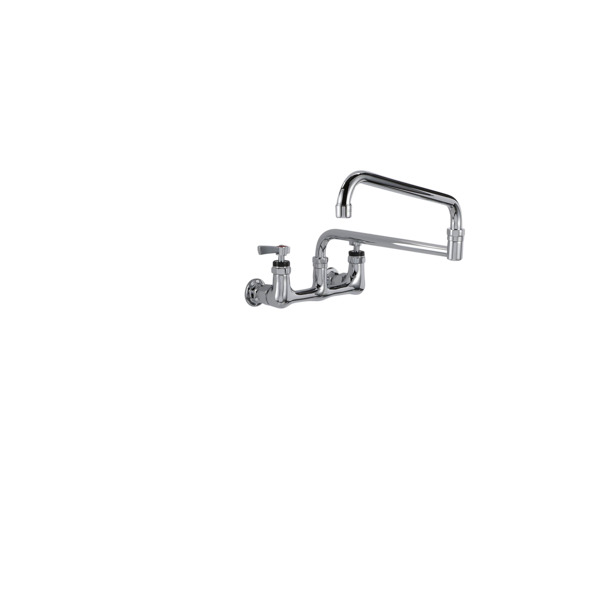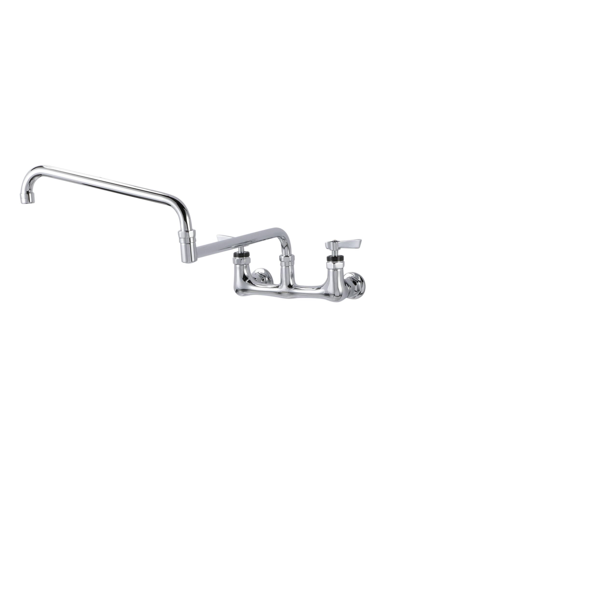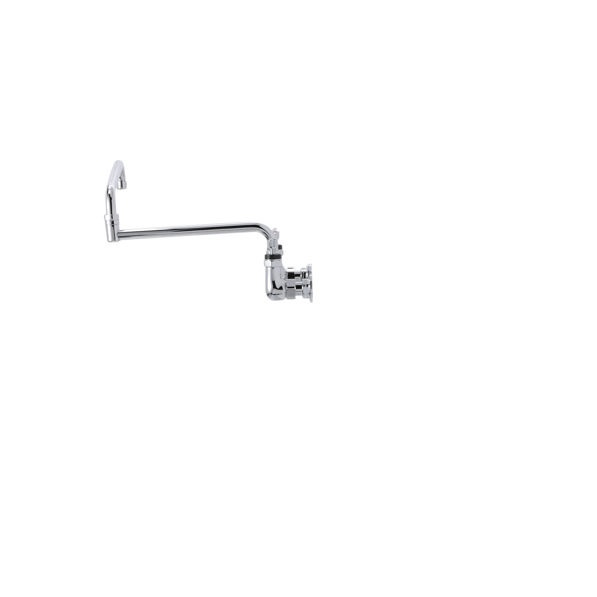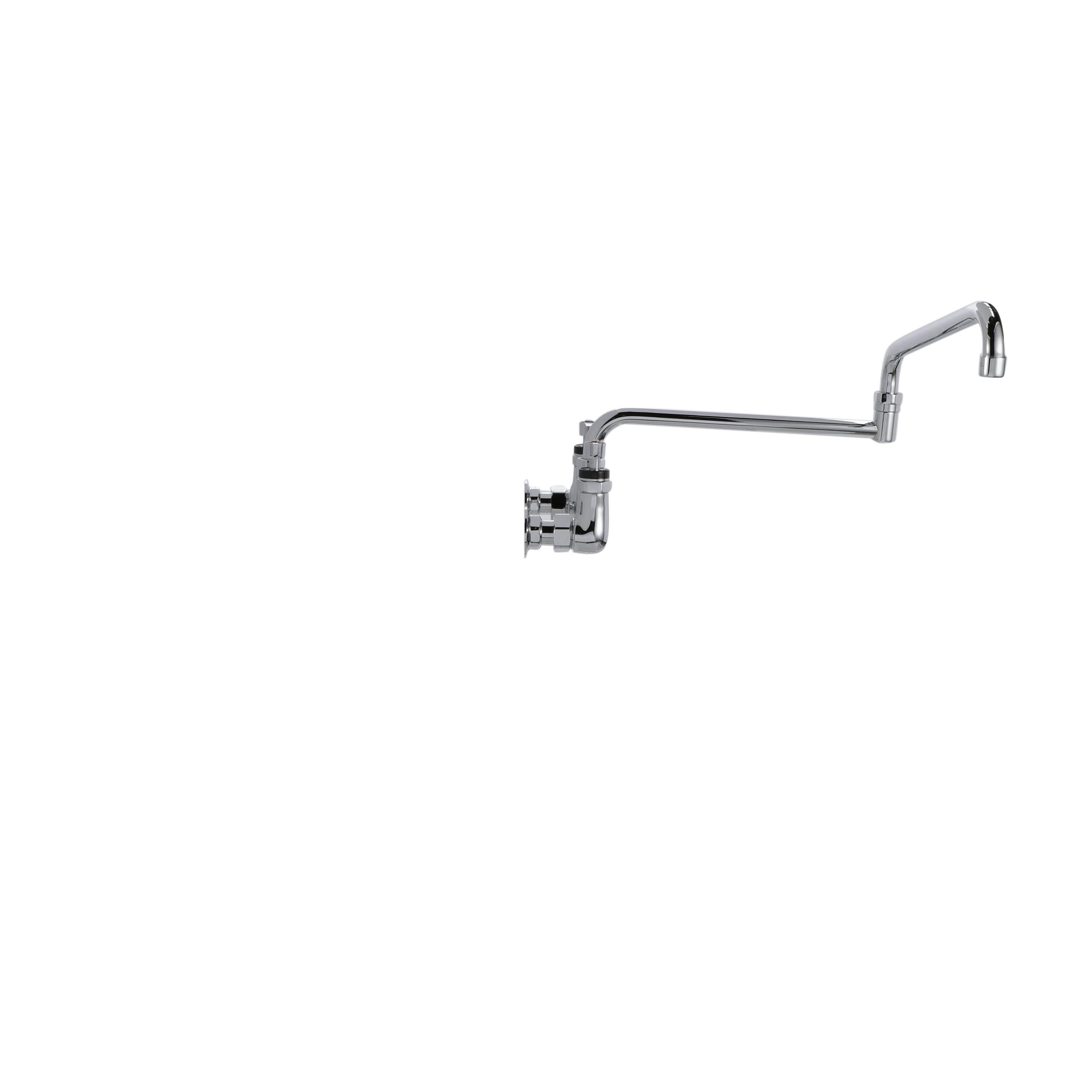 - Encore® 8" OC. Brass Chrome Plated Wall Mount Faucet with 24" Double Jointed Cast Swivel Spout Pot Filler with Faucet Mounting Kit