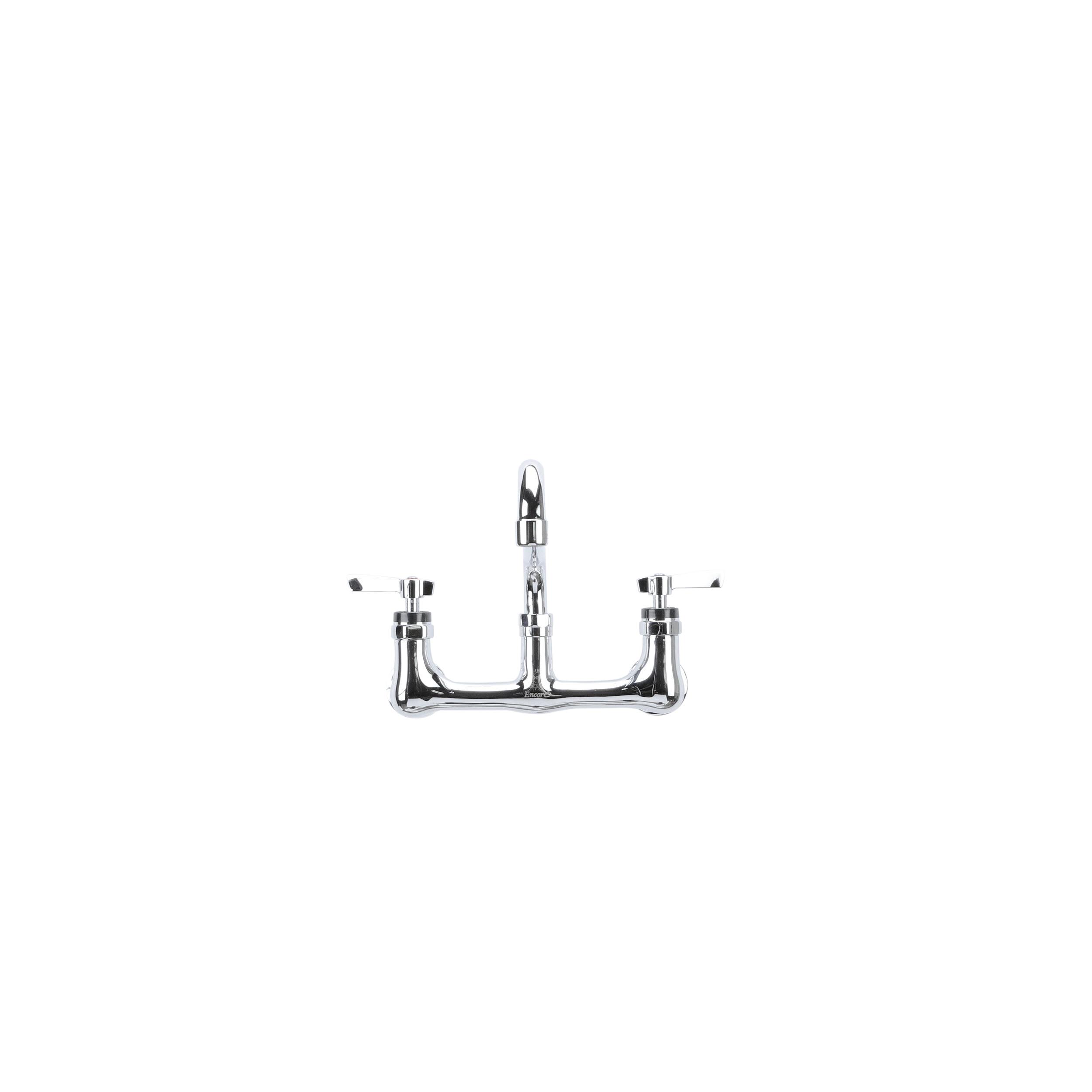 Encore® 8" OC. Brass Chrome Plated Wall Mount Faucet with 14" Swivel Spout, Retail Packaging