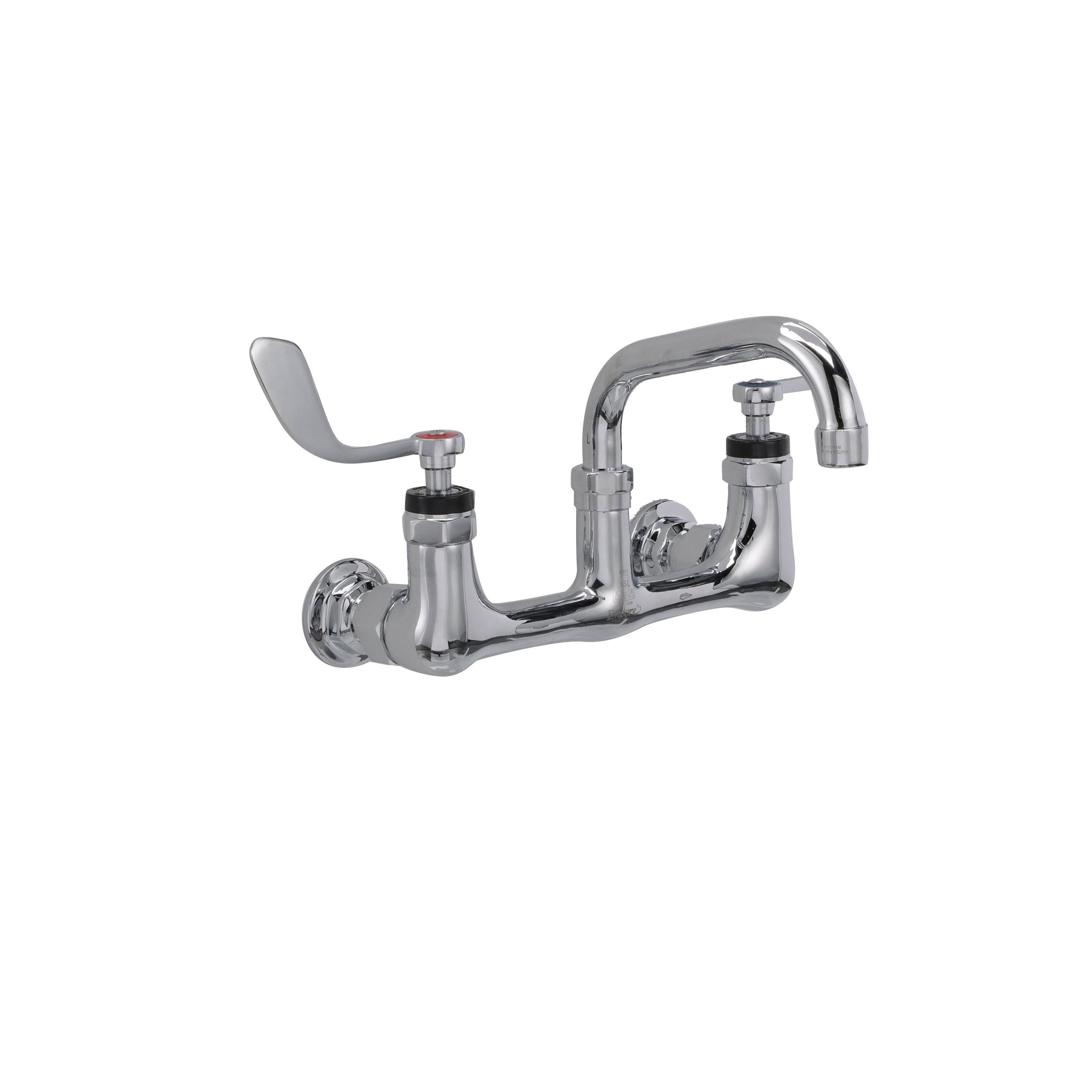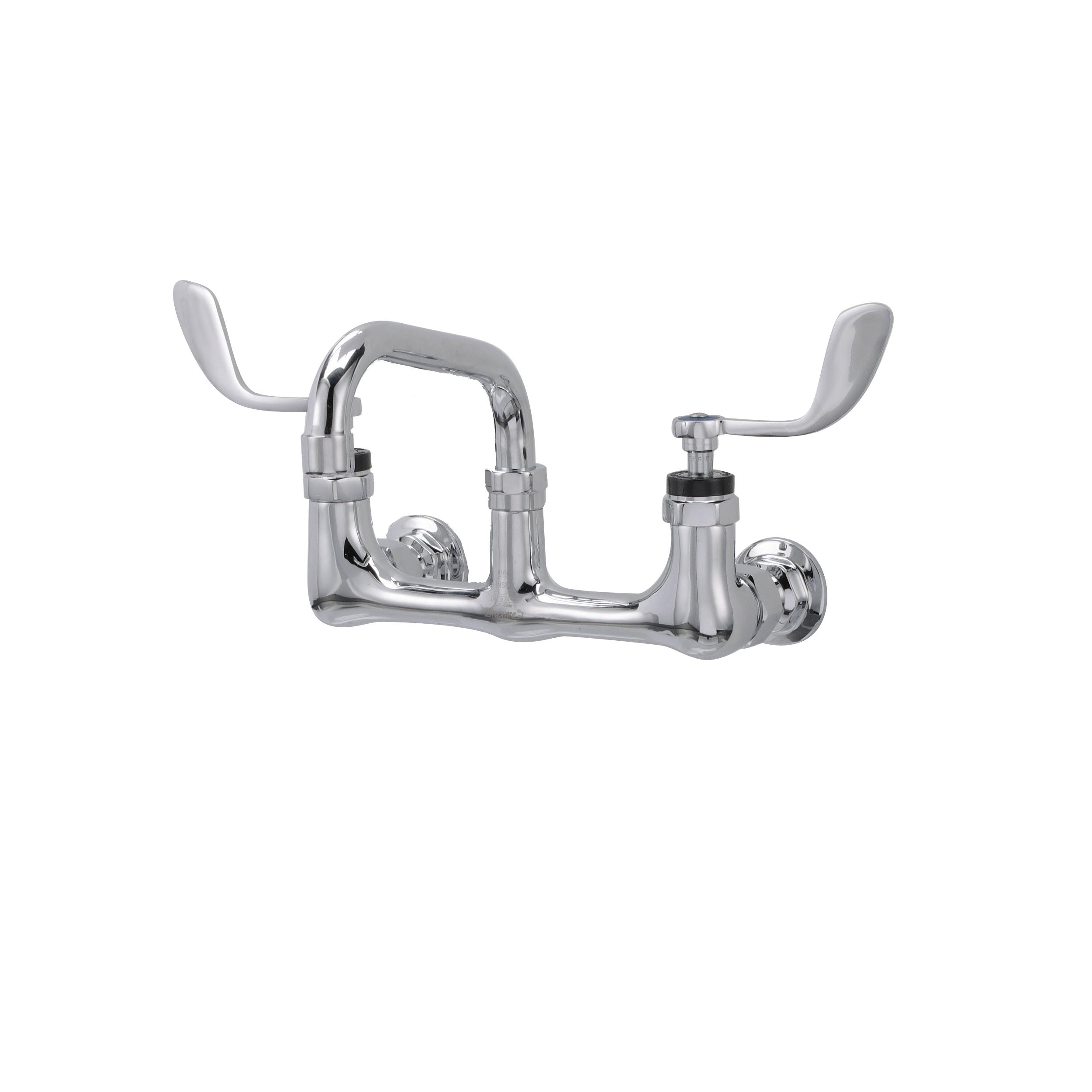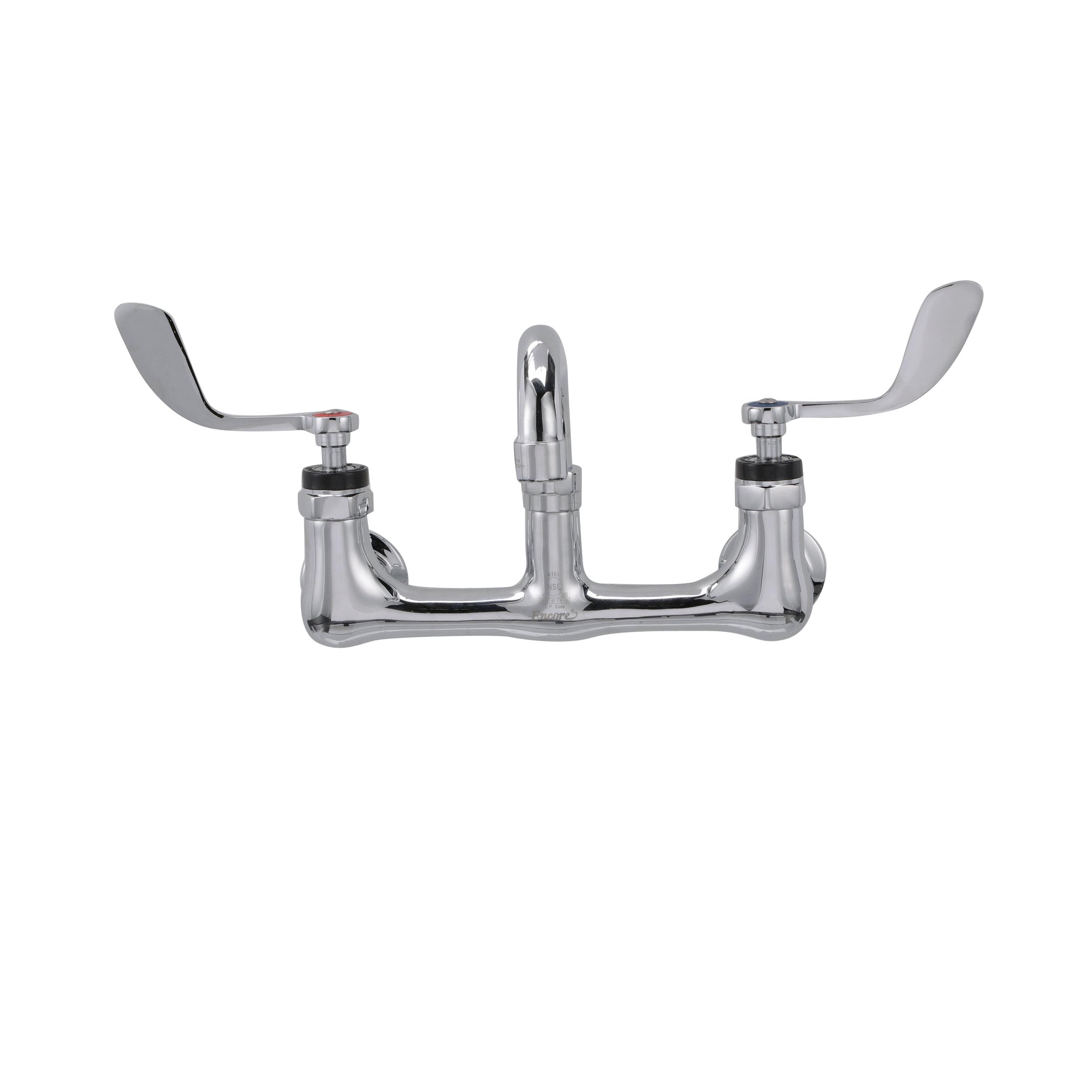 Encore® 8" OC. Brass Chrome Plated Wall Mount Faucet with 6" Swivel Spout 4" Wrist Blade Handles