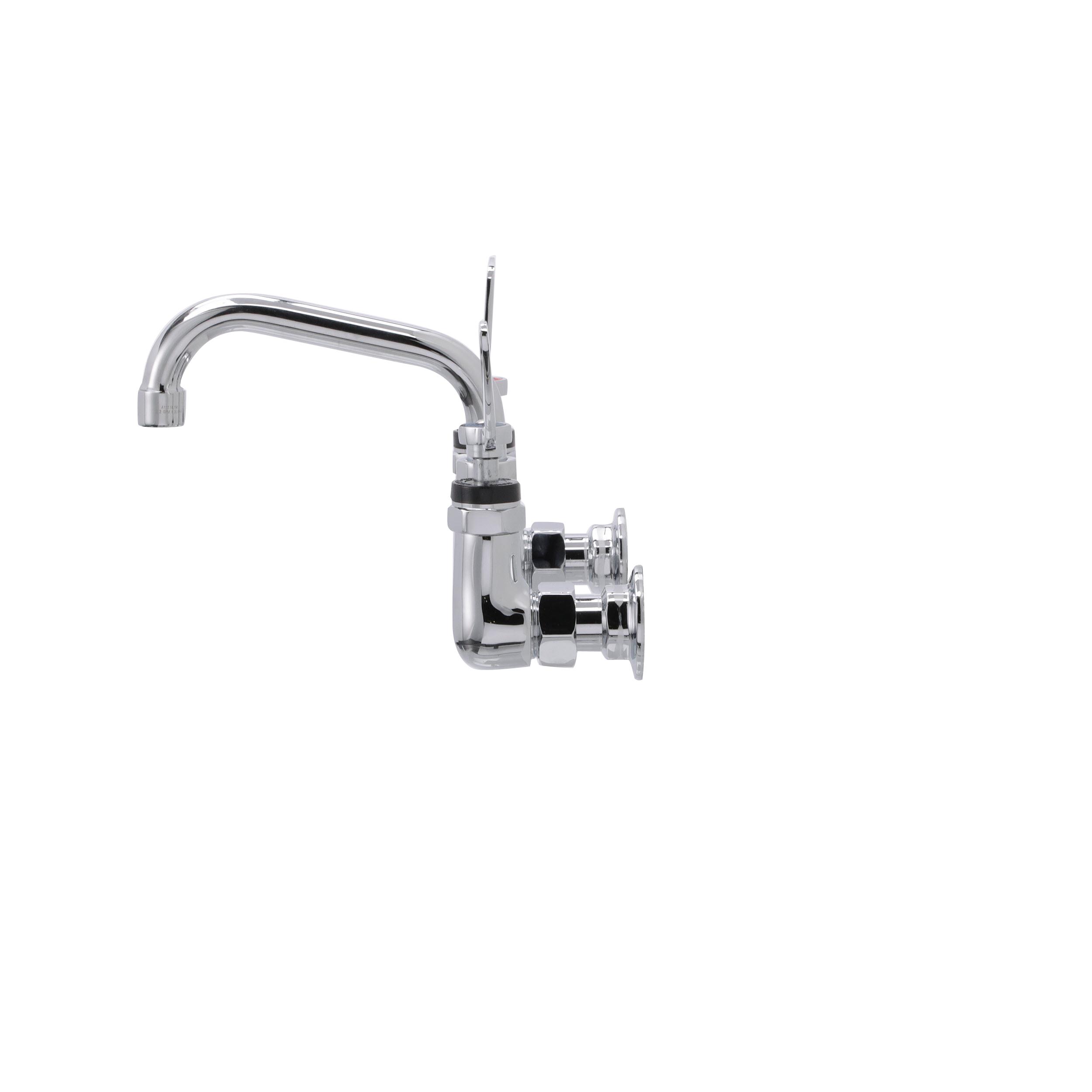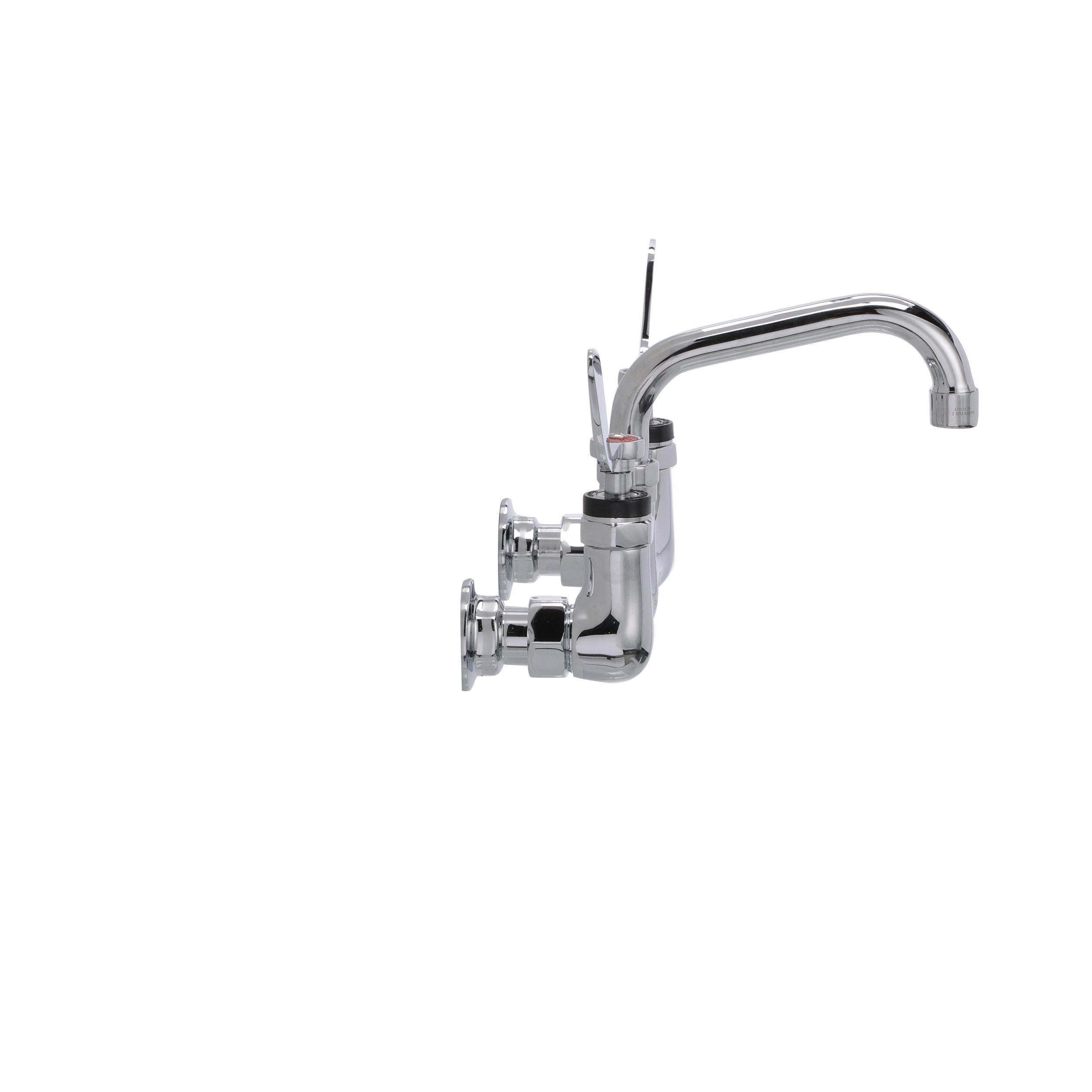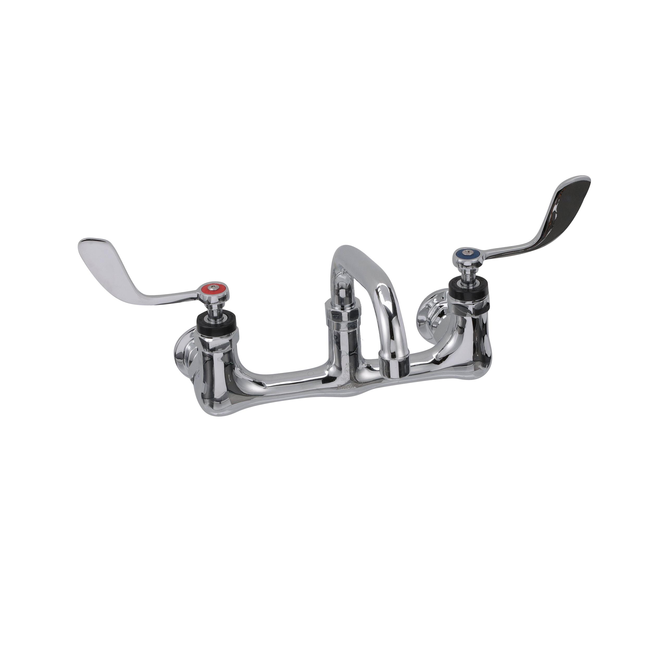 Encore® 8" OC. Brass Chrome Plated Wall Mount Faucet with 6" Swivel Spout 4" Wrist Blade Handles