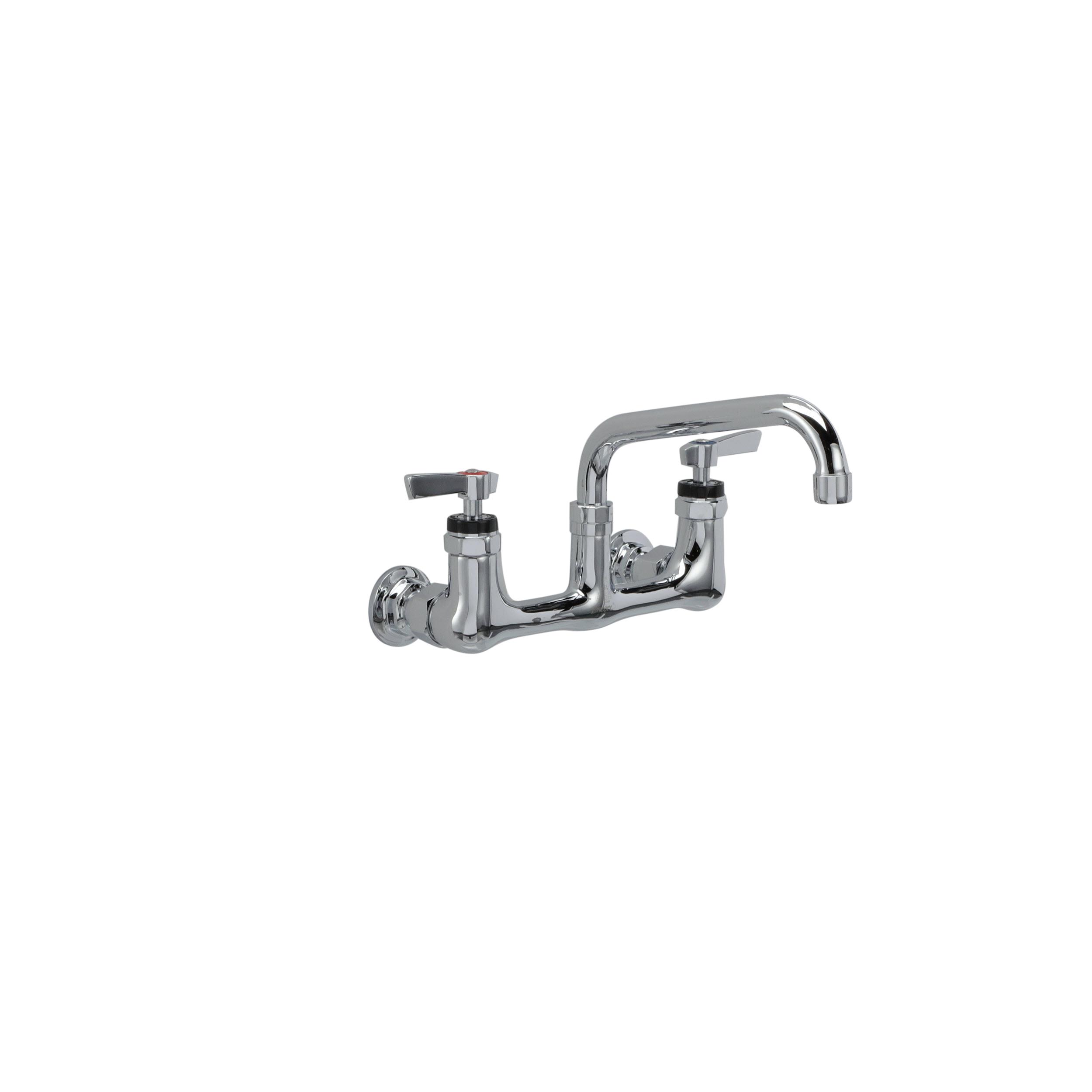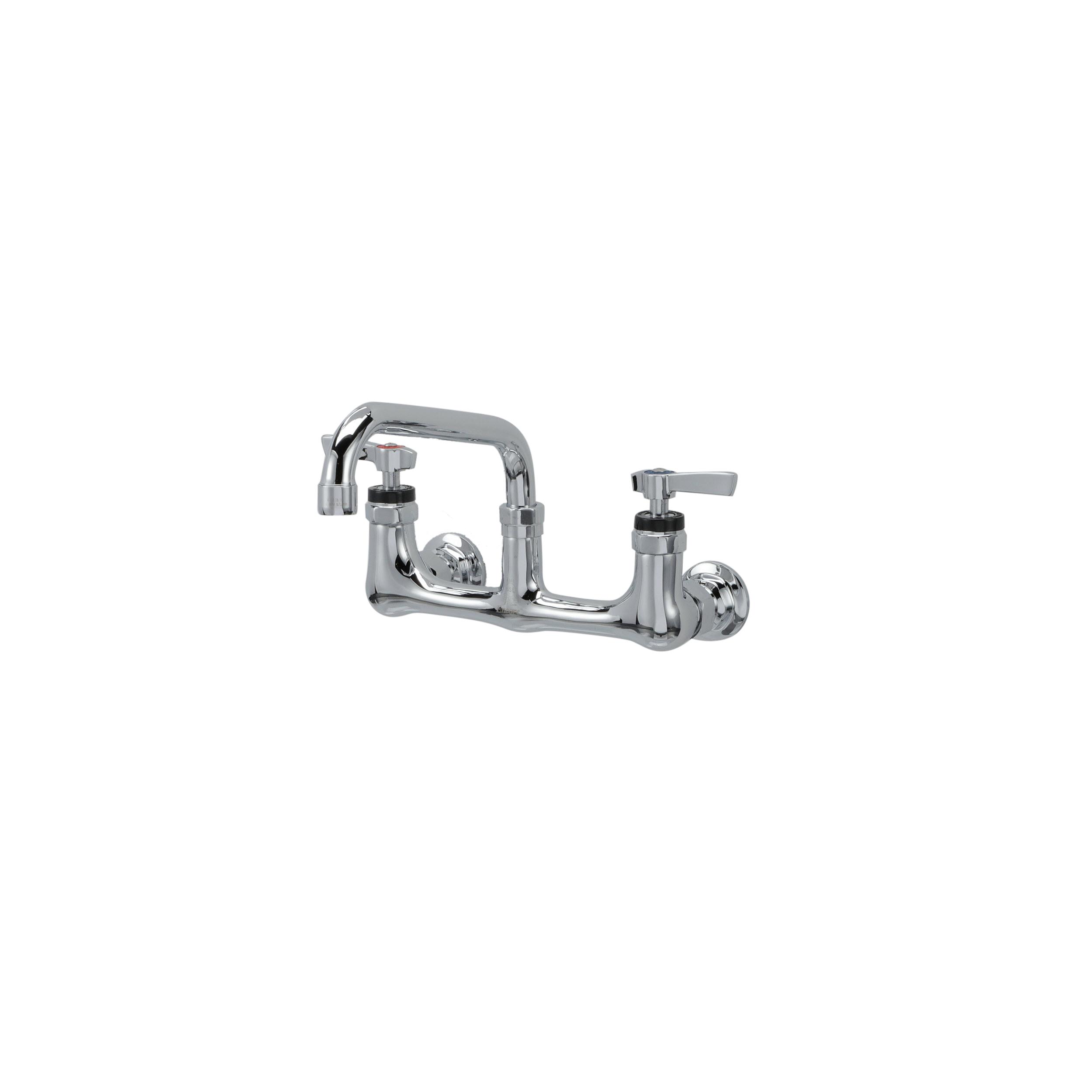 Encore® 8" OC. Brass Chrome Plated Wall Mount Faucet with 8" Swivel Spout Lever Handles and Retail Packaging
