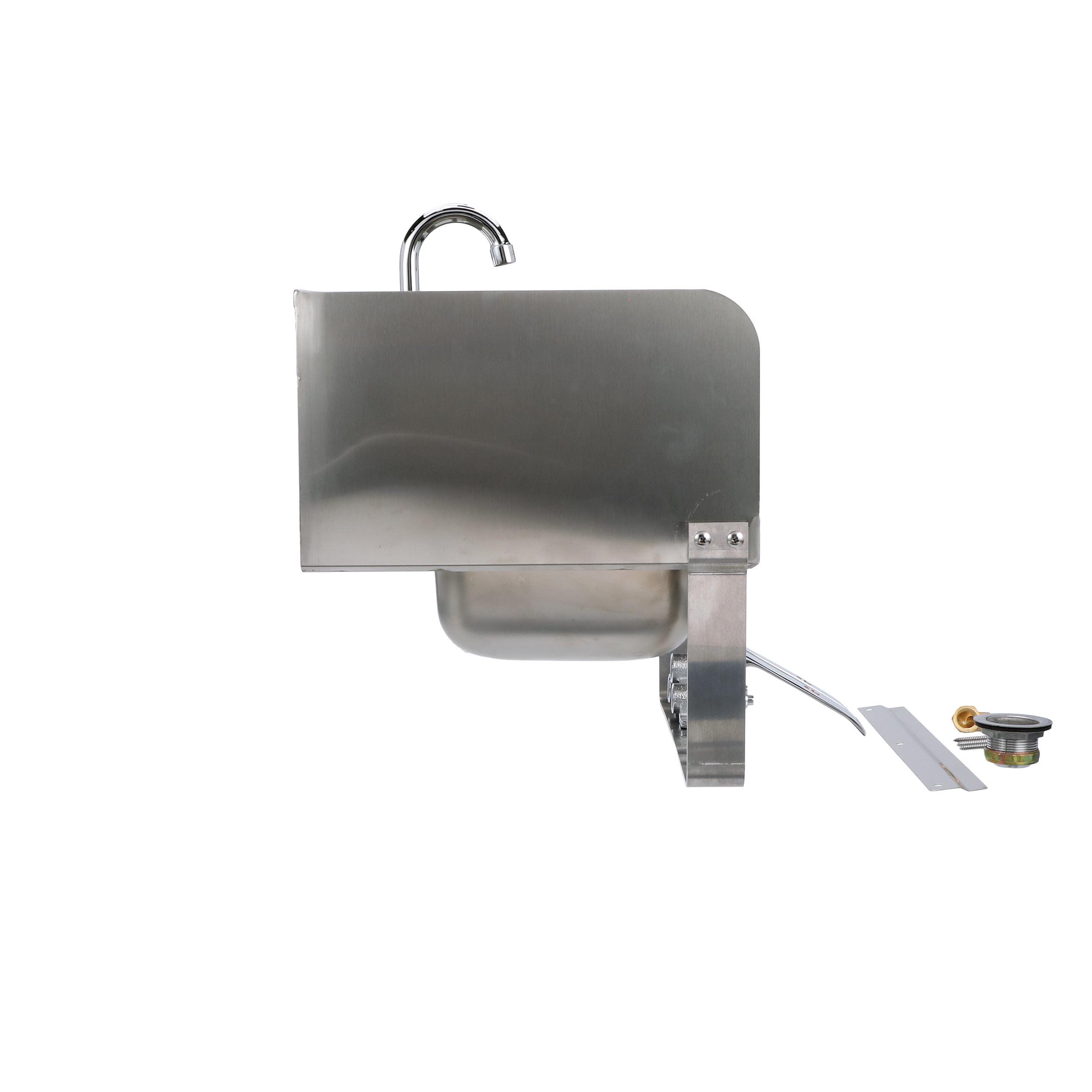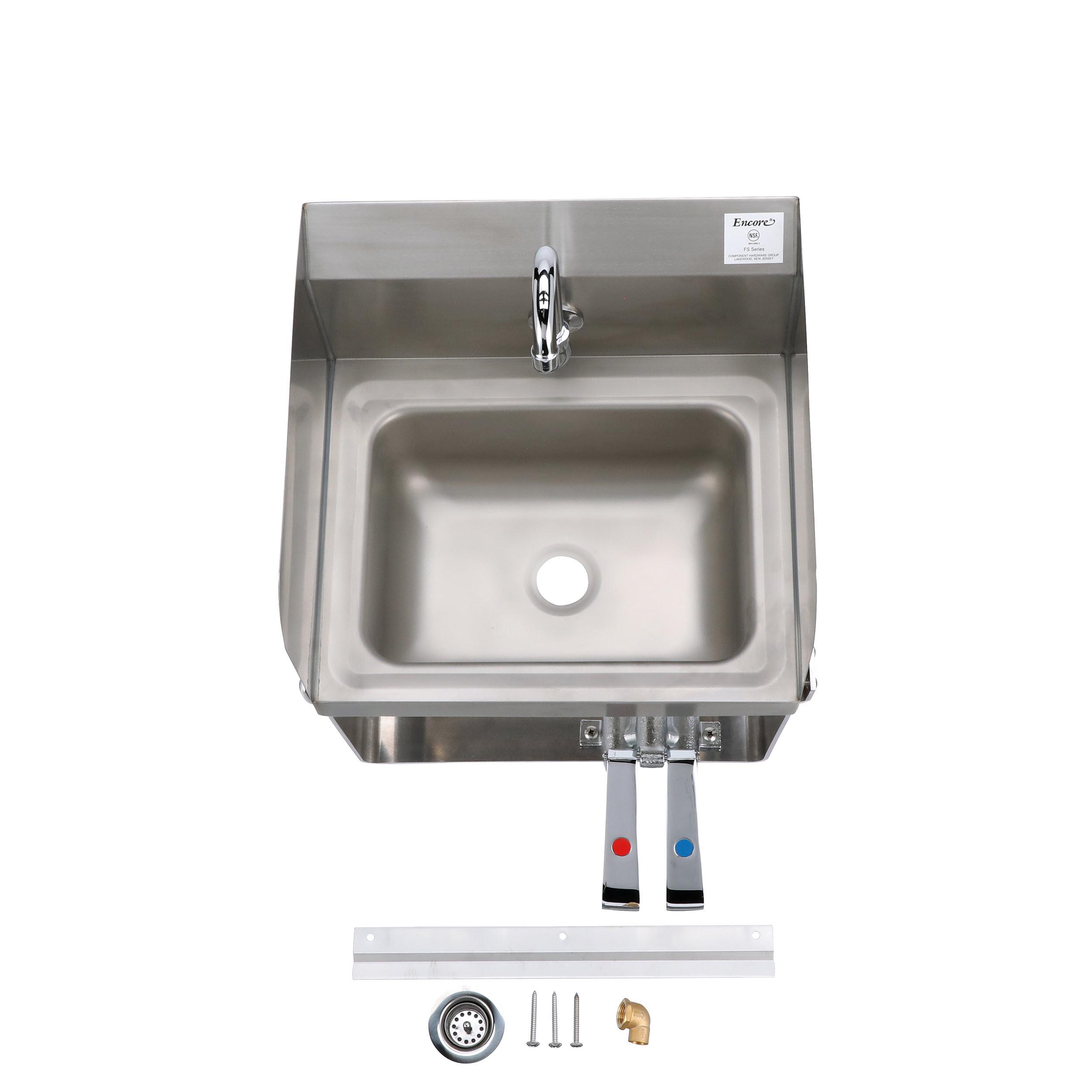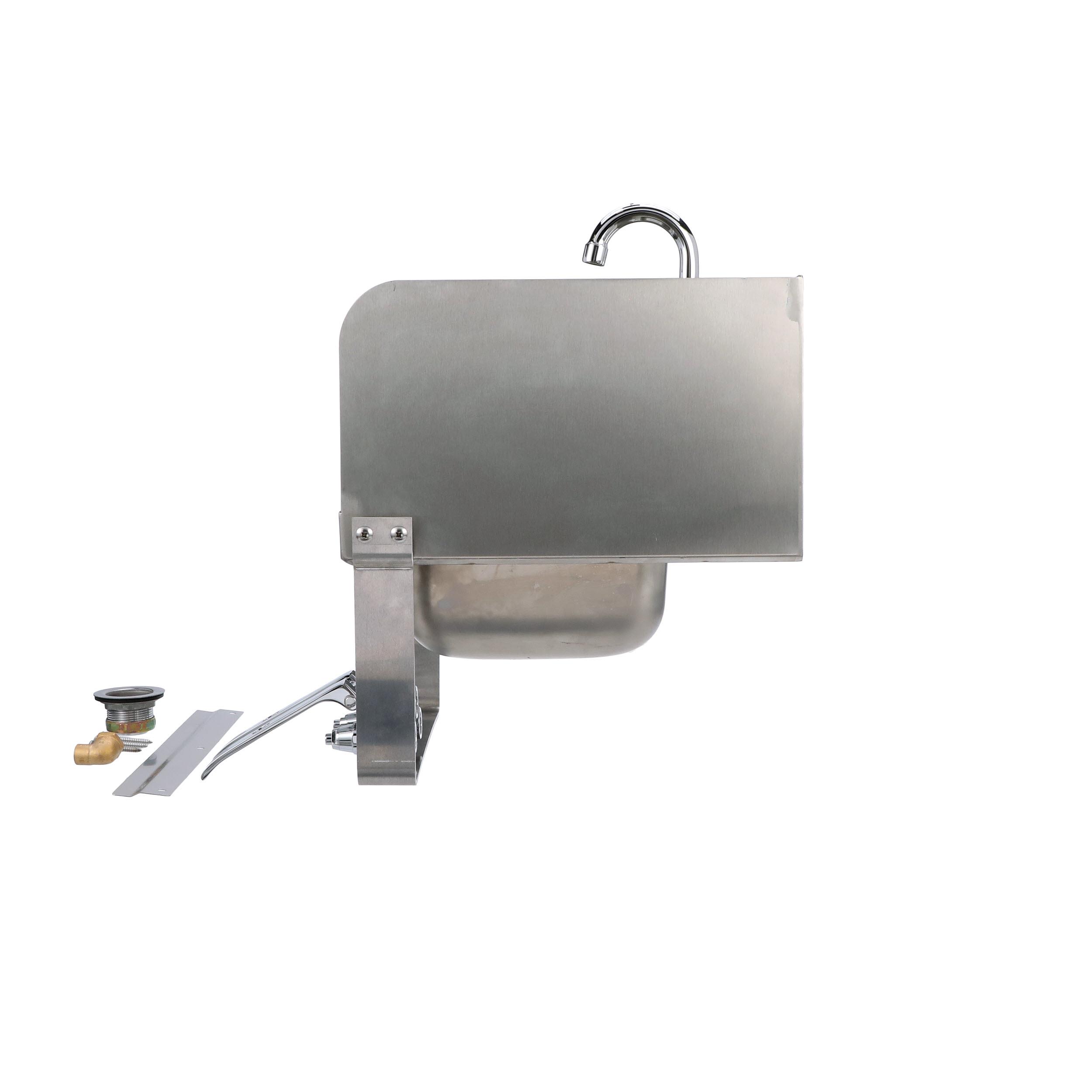 Encore Wall Mount Type 304 Series Stainless Steel Hand Sink 14" x 10" x 5" Deep with Single Hole, Double Side Splash, Dual knee valve with Gooseneck spout