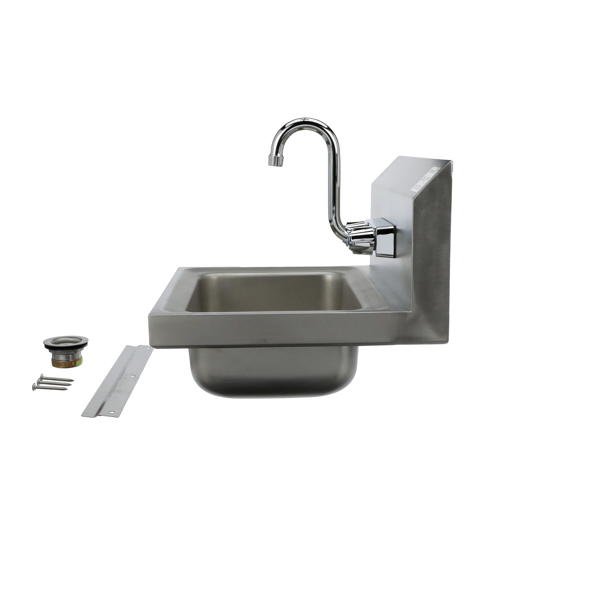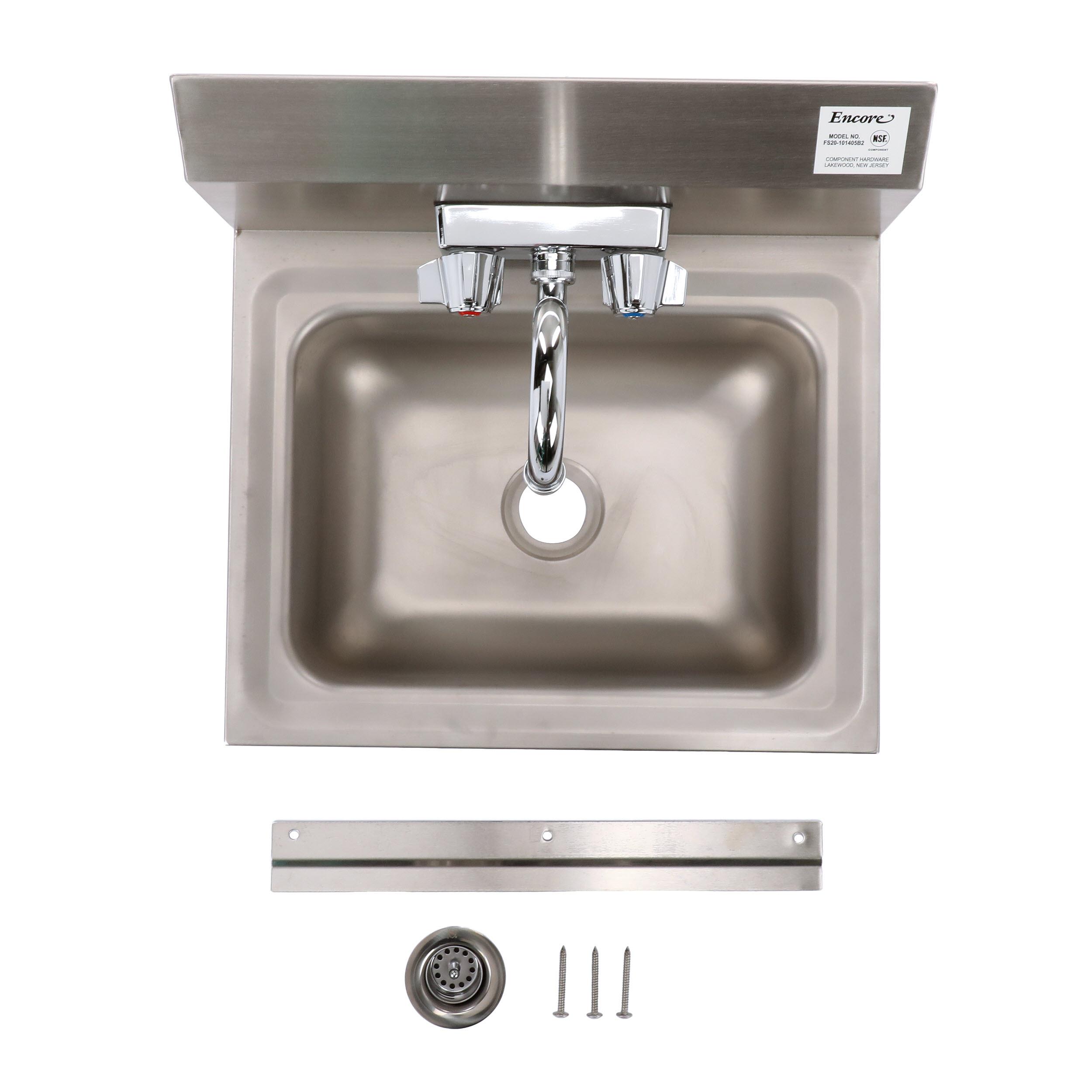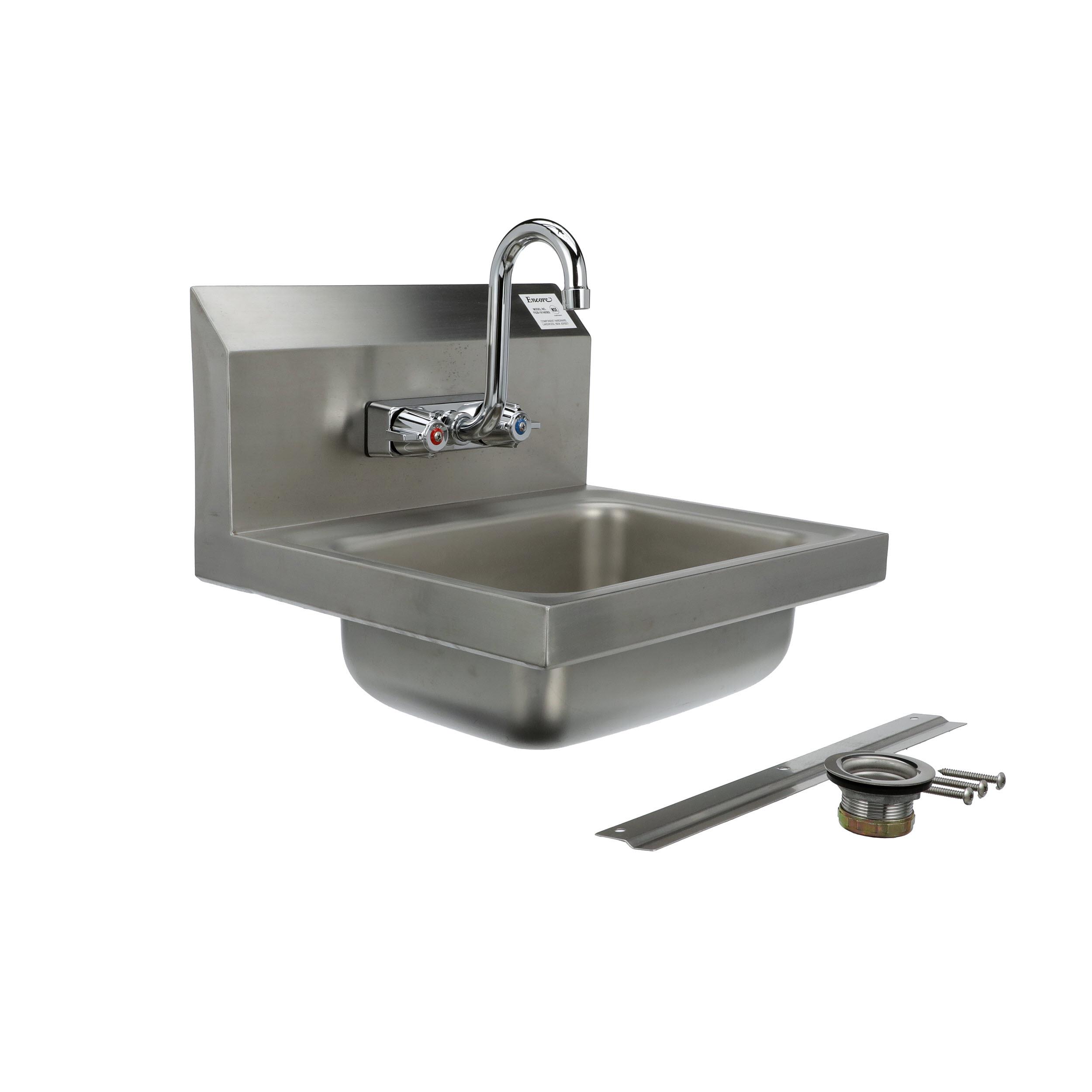 Encore® Wall Mount Type 304 Series Stainless Steel Hand Sink 4" OC Mounting Holes 14" x 10" x 5" Deep Less Side Splash with KHS15-4000