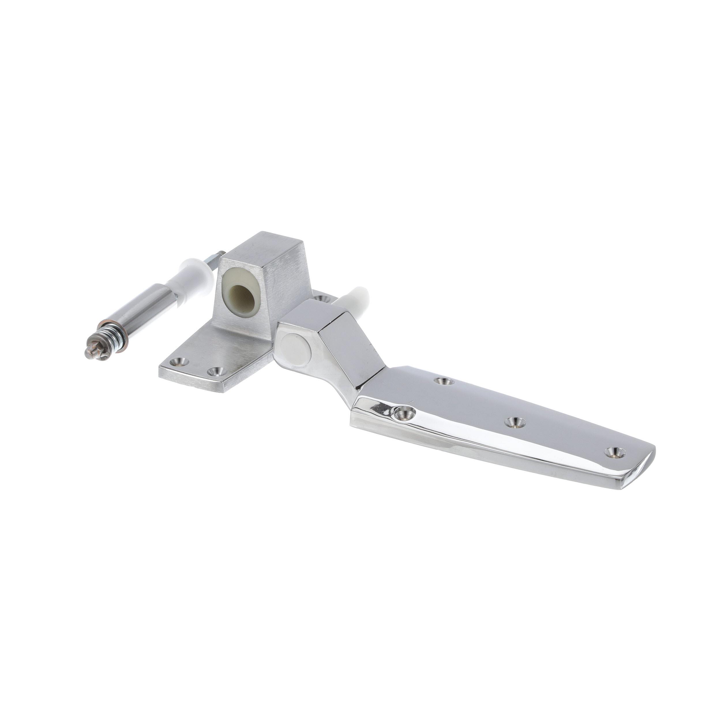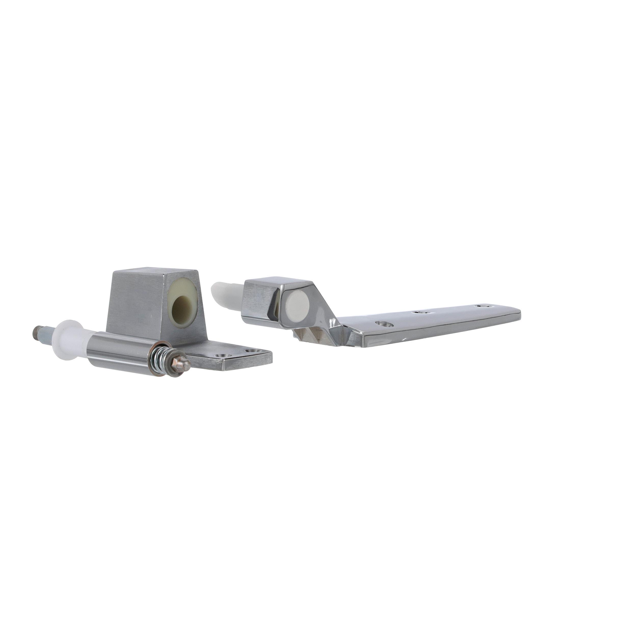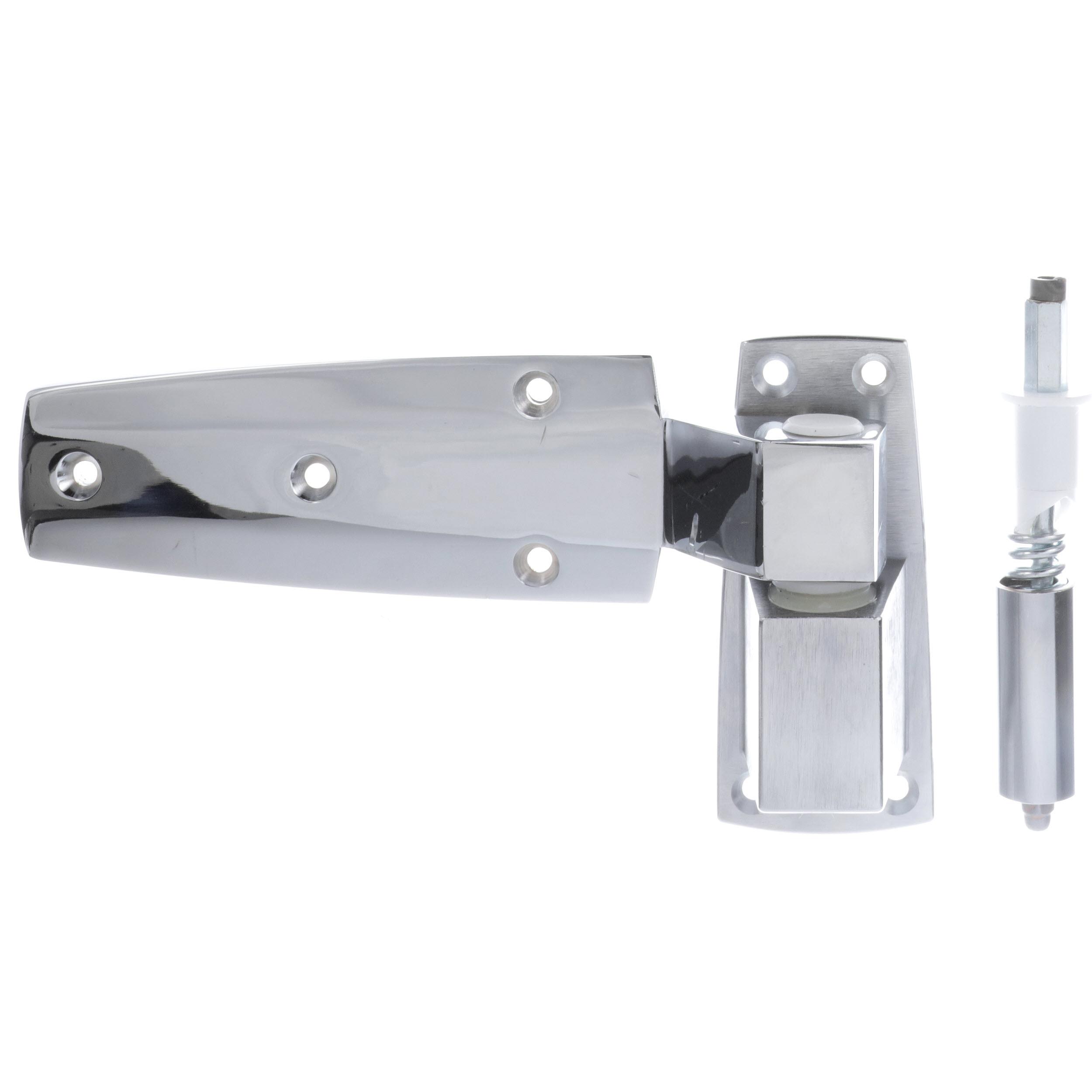 - Flush Offset Satin Chrome Cam-Rise Walk-In Door Hinge With Spring Assist