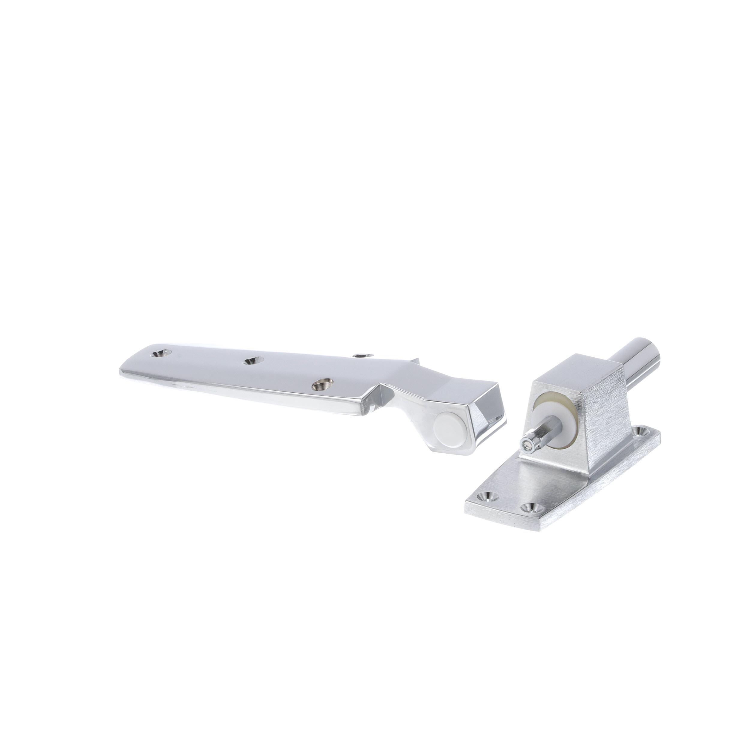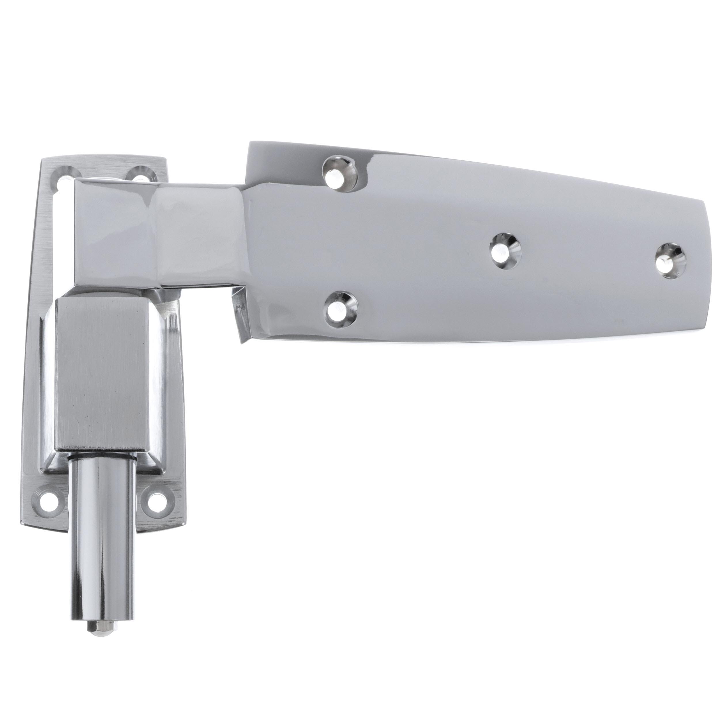 - 1-3/4" Offset Satin Chrome Cam-Rise Walk-In Door Hinge With Spring Assist