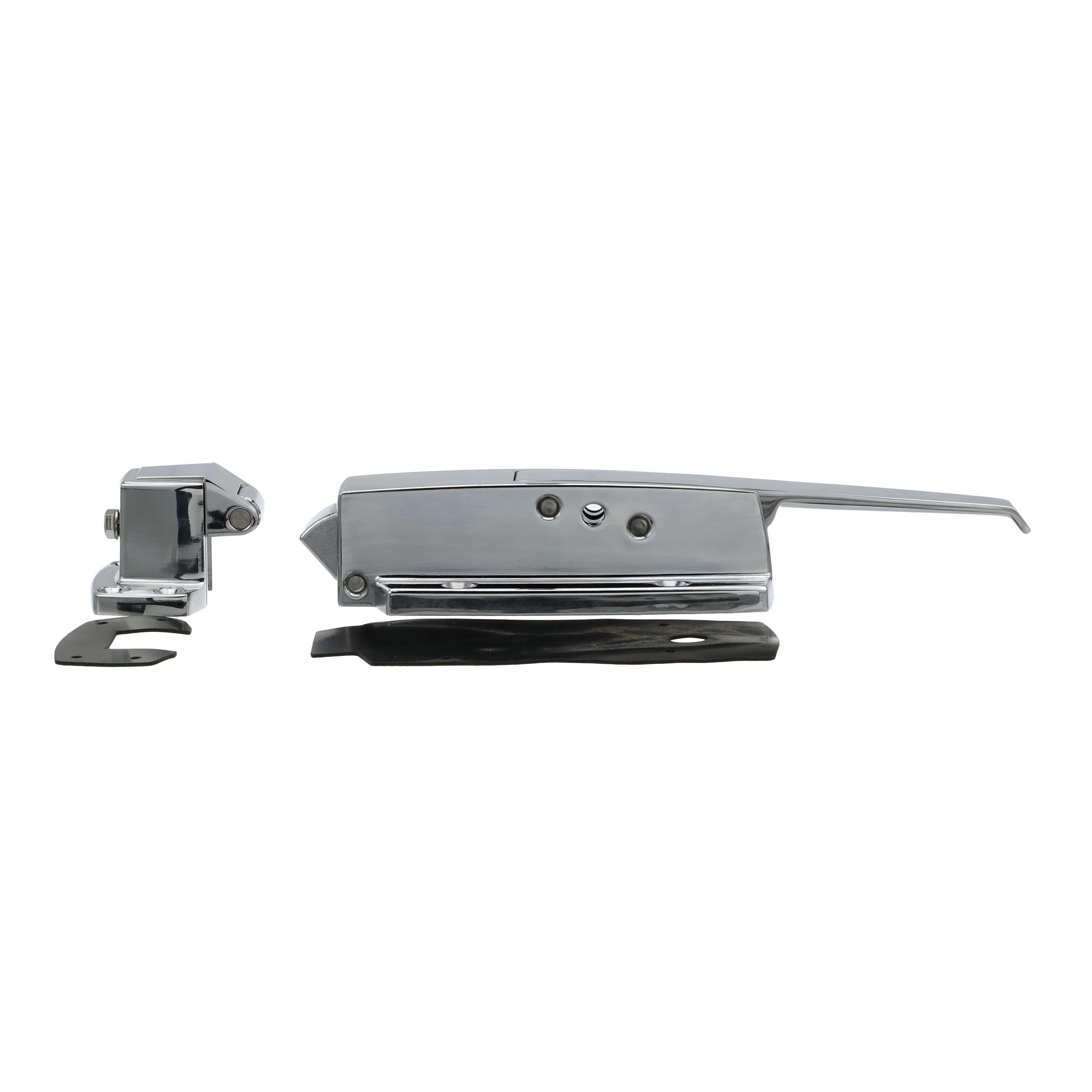 -1/8" to 3/8" Offset Polished Chrome Heavy Duty Walk-In Cooler Door Safety Latch with Cylinder Lock, Strike and Gaskets