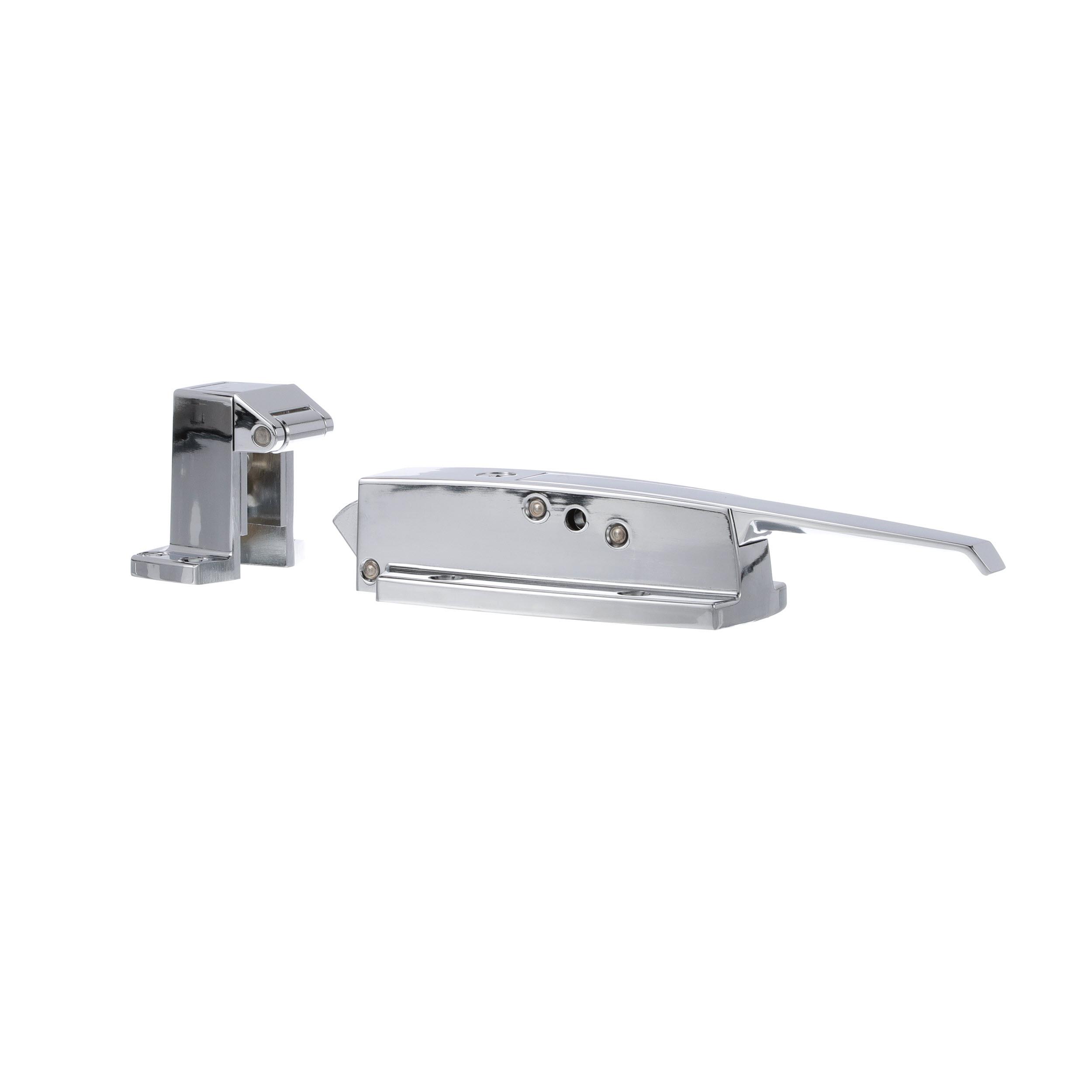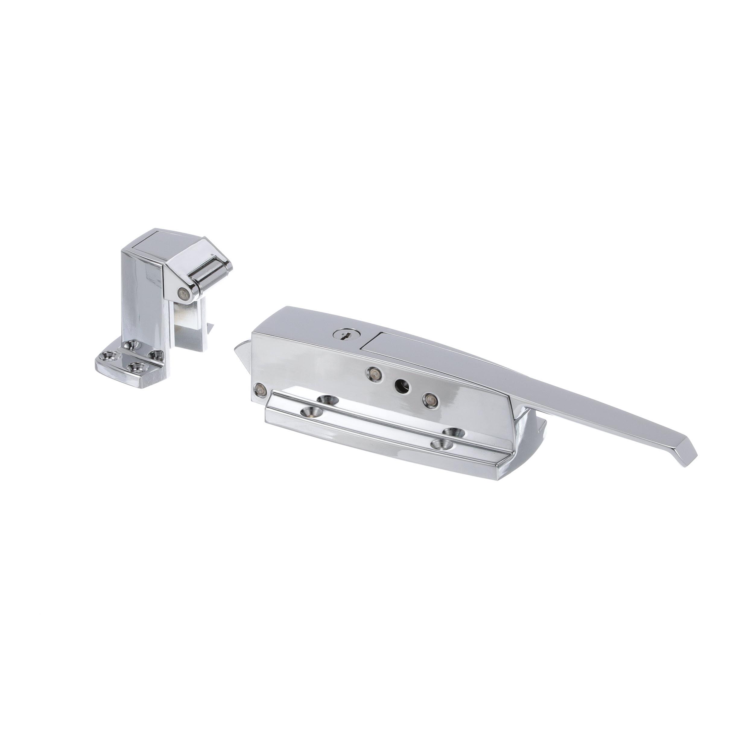 3/4 to 1-5/8" Offset Polished Chrome Heavy Duty Walk-In Cooler Door Safety Latch with Cylinder Lock and Strike