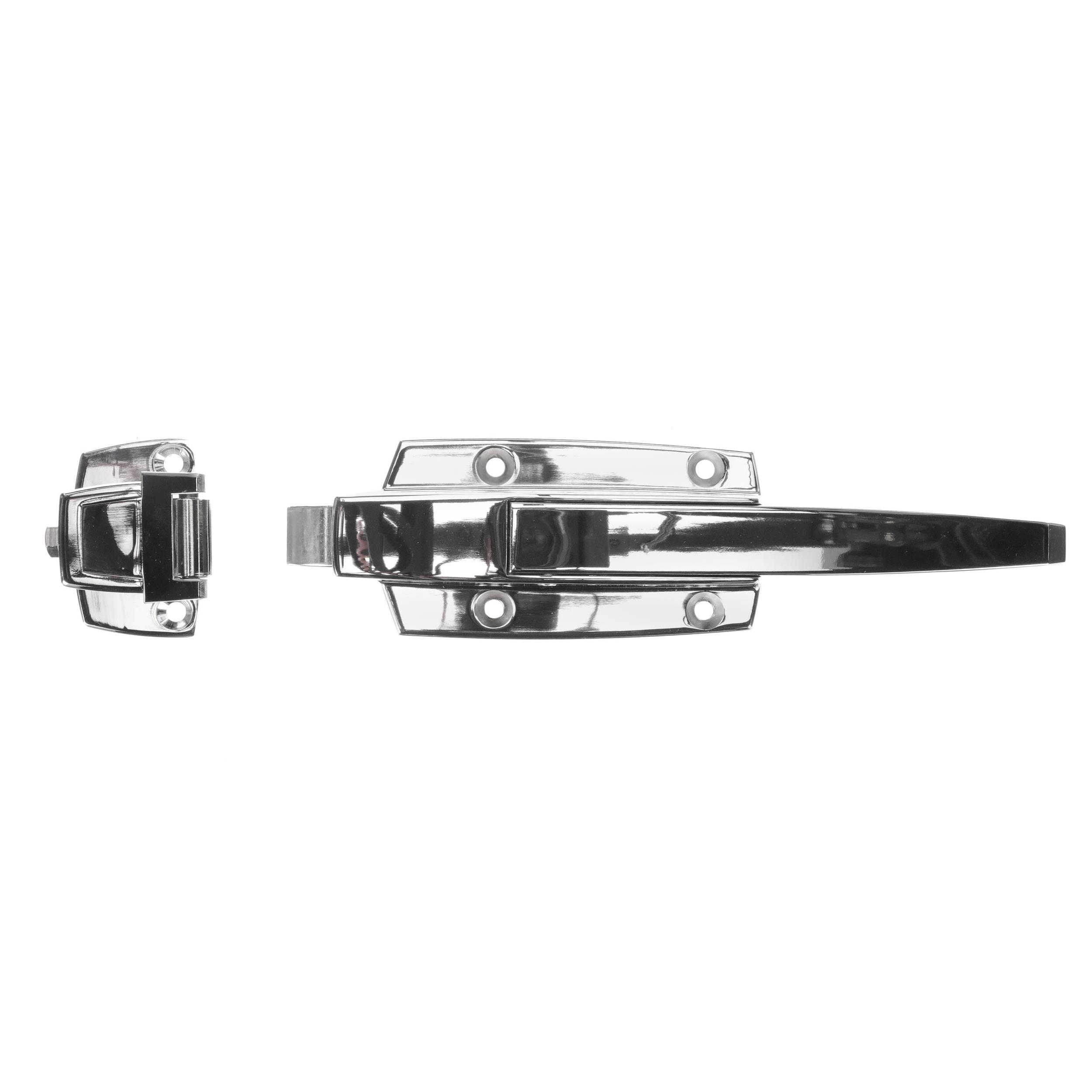 1-5/8" to 2-1/2" Offset Polished Chrome Walk-In Cooler Door Safety Latch with Strike