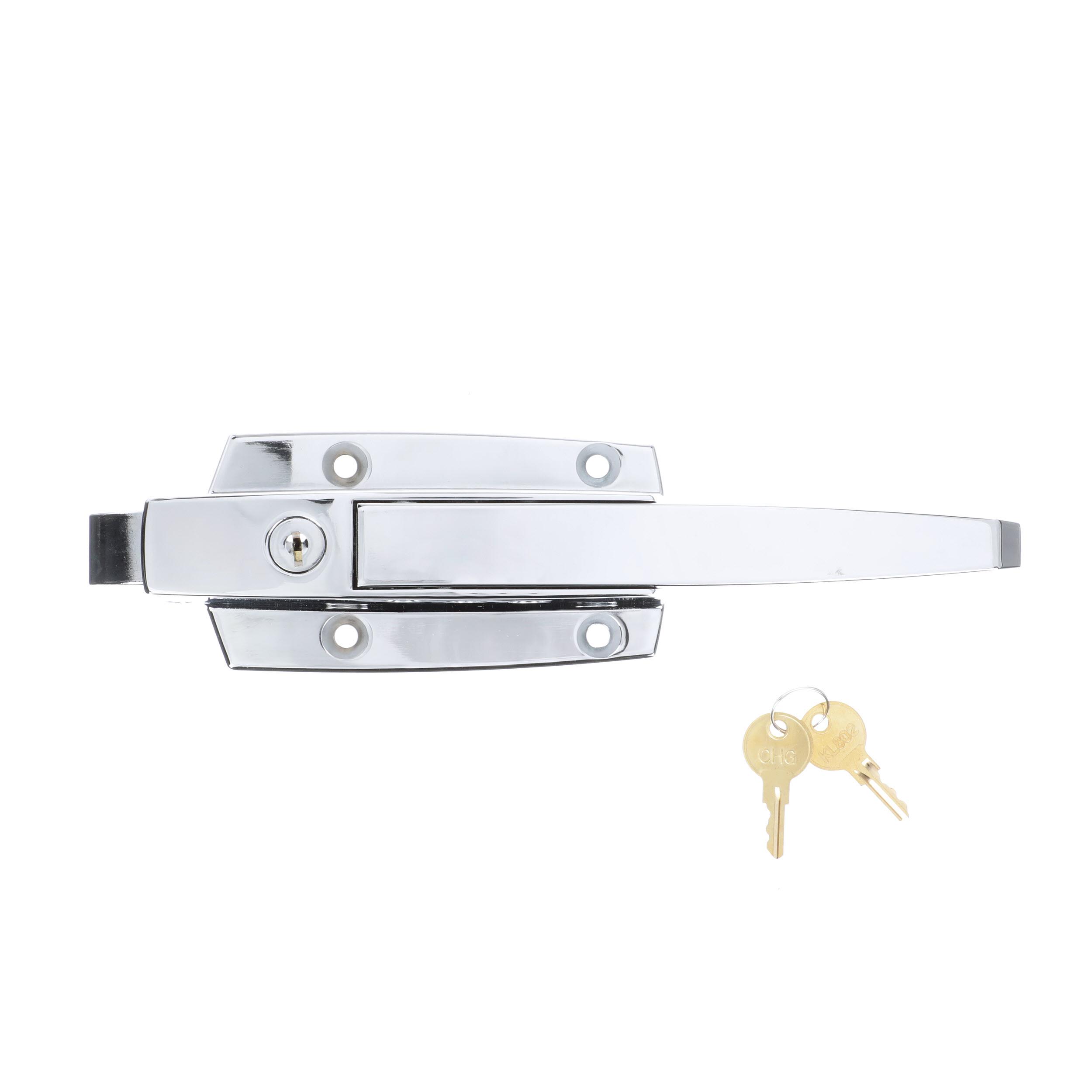 Polished Chrome Walk-In Cooler Door Safety Latch Body With Cylinder Lock Only - Less Strike