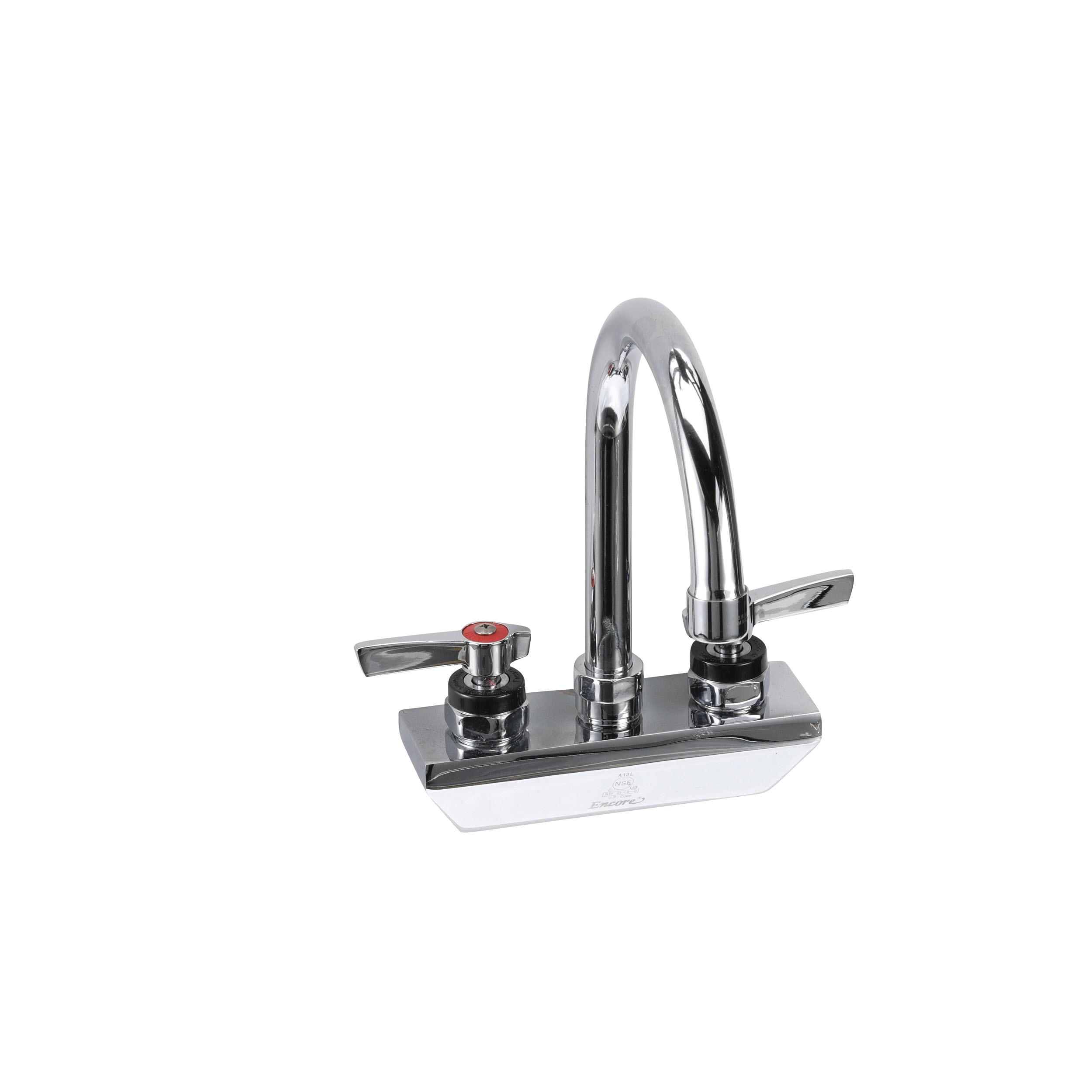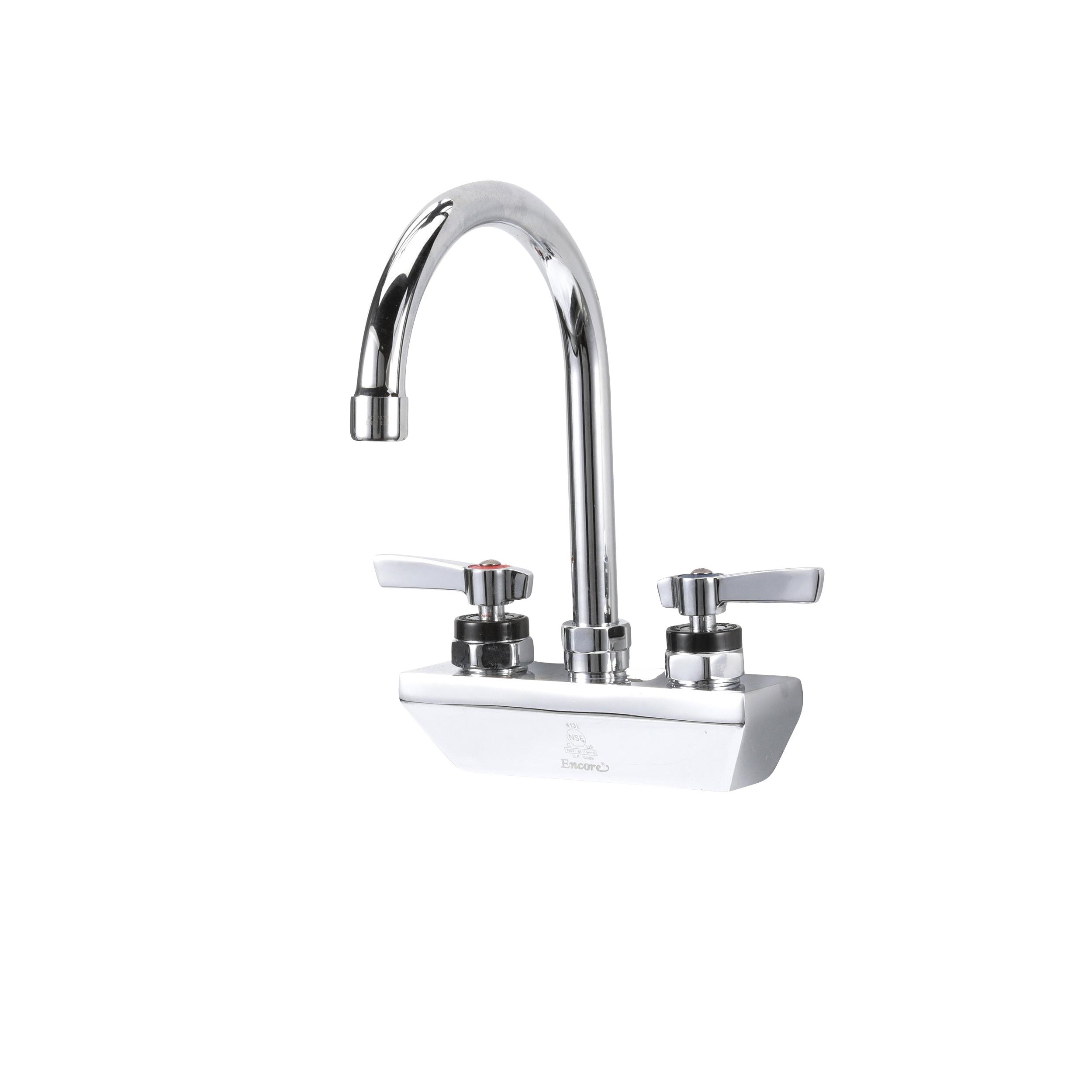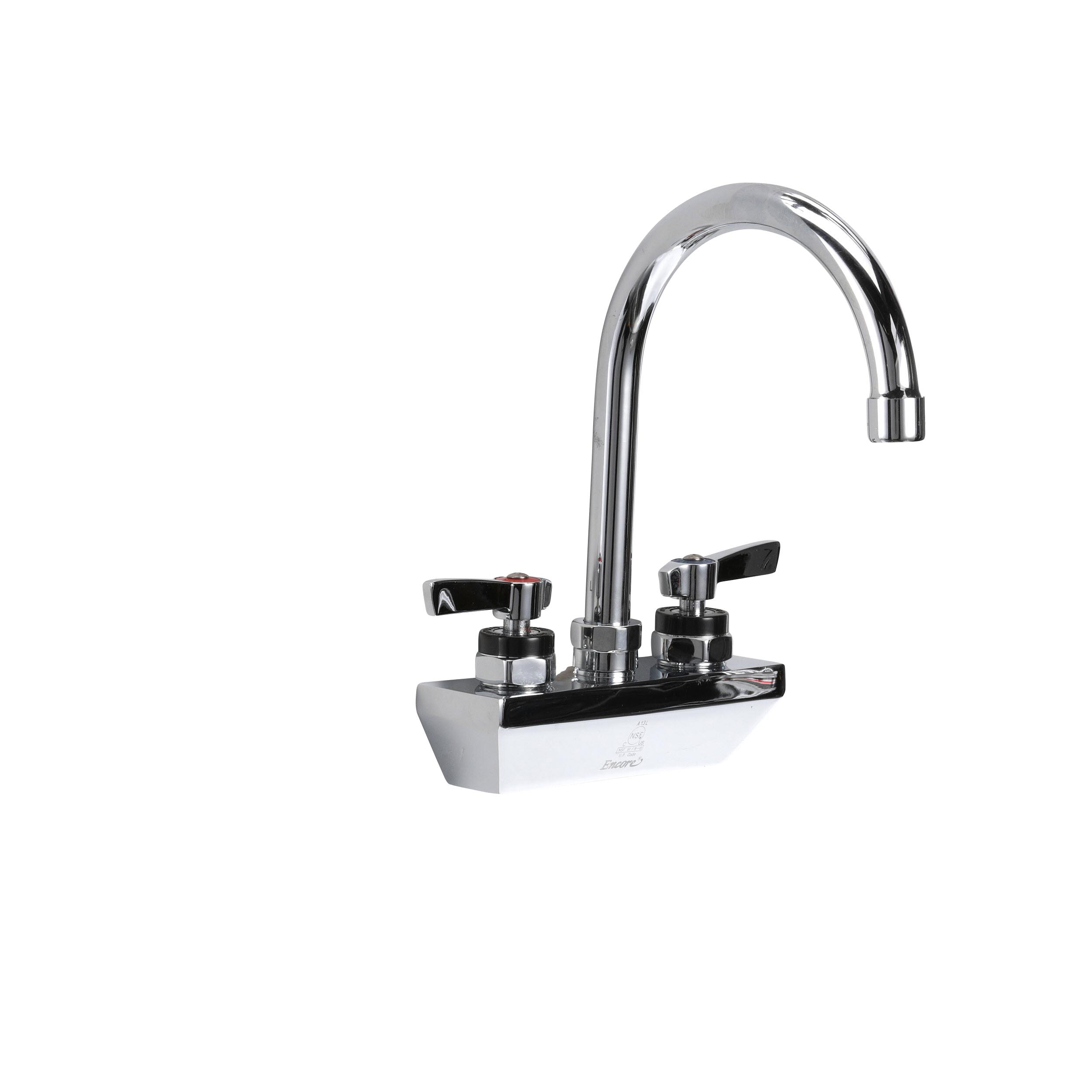 Encore 4" OC Wall Mount Faucet Ceramic Valves with 6" Swivel Gooseneck Spout, Retail Packaging