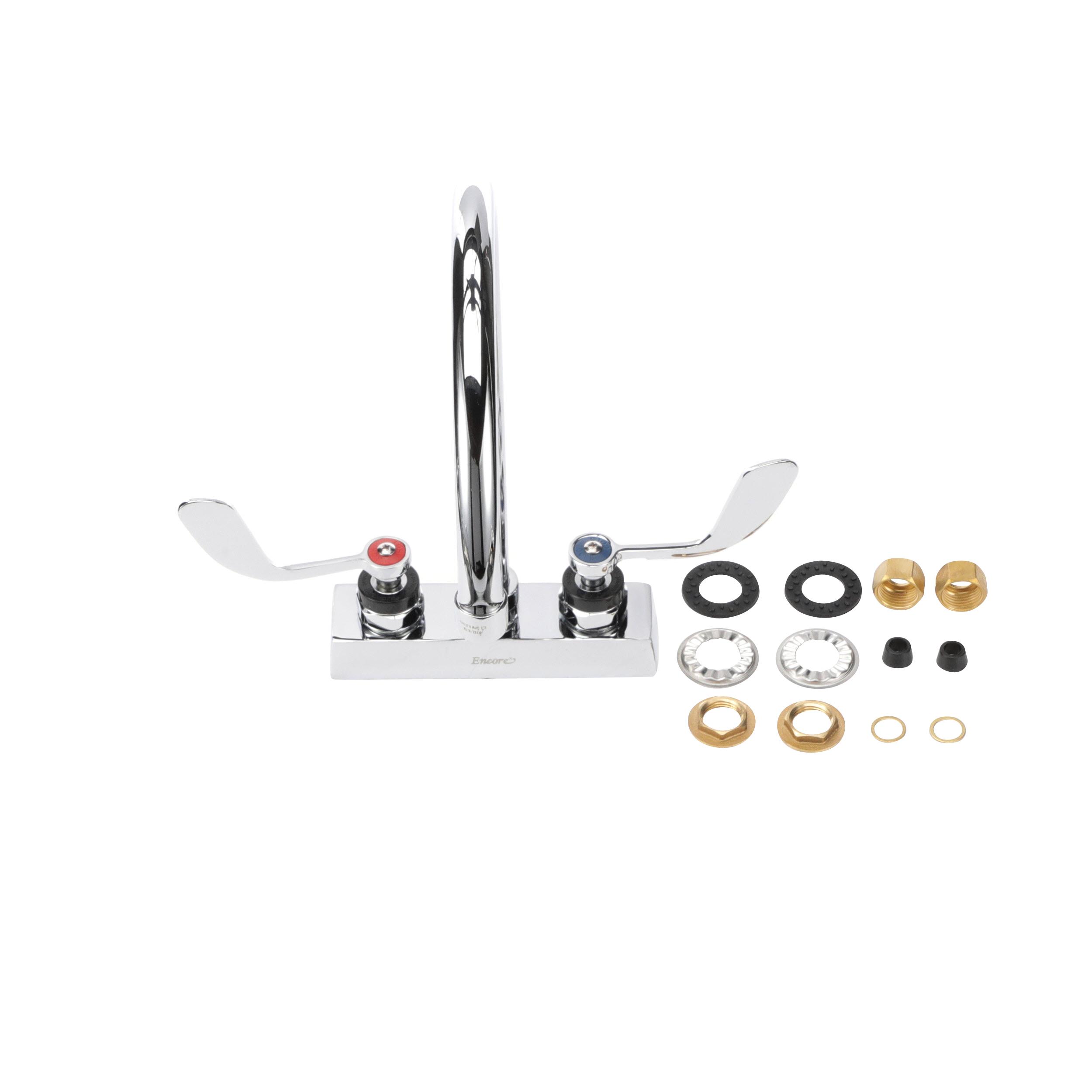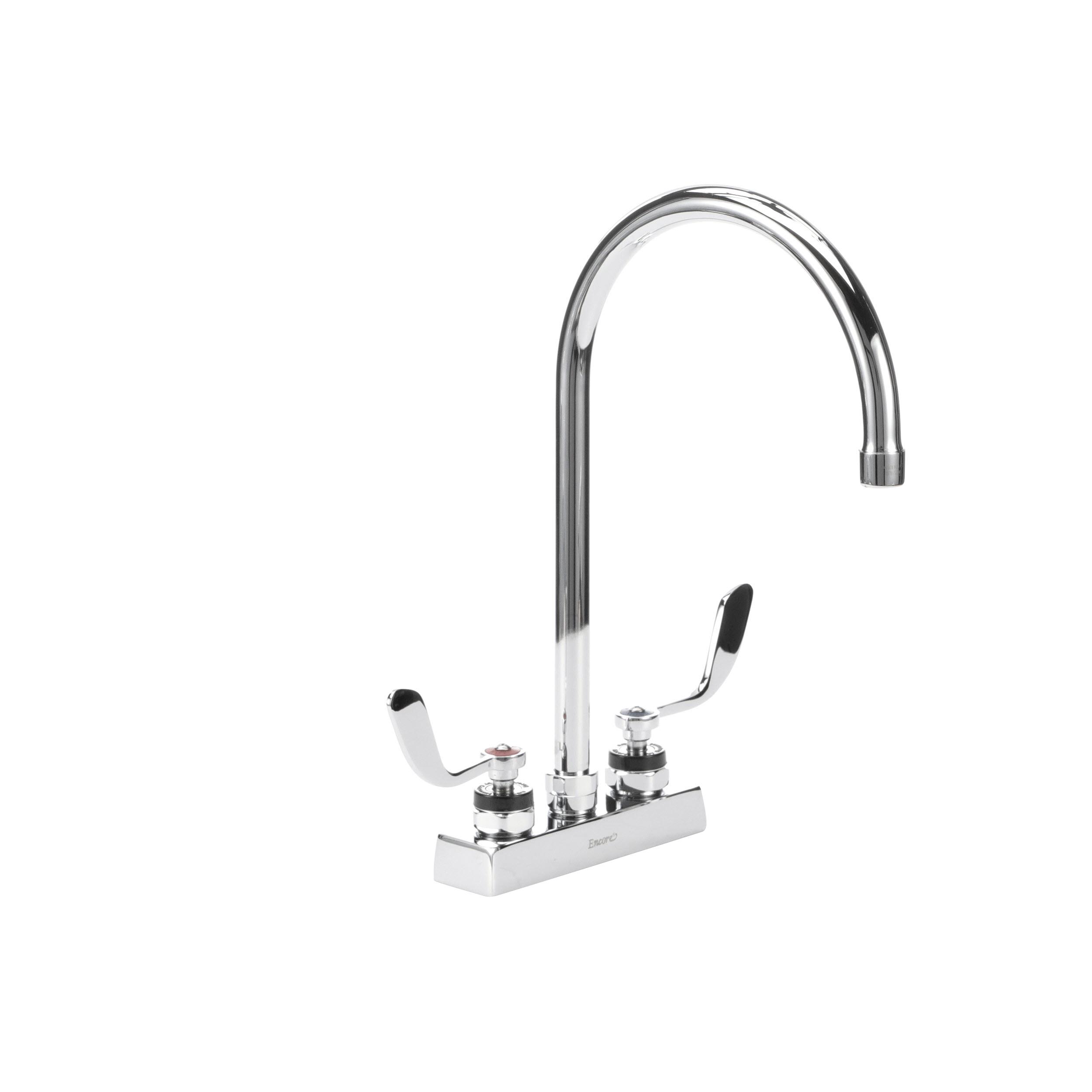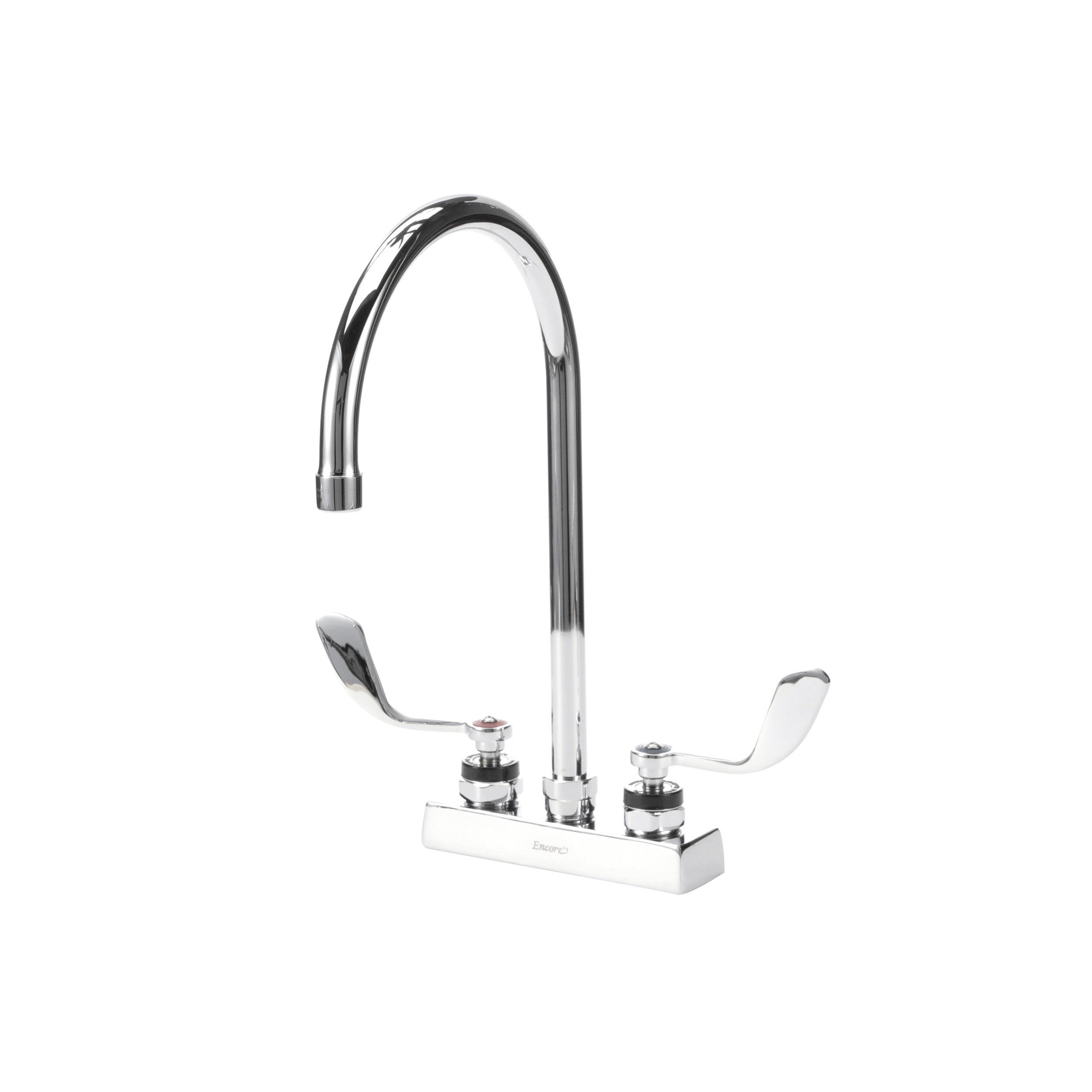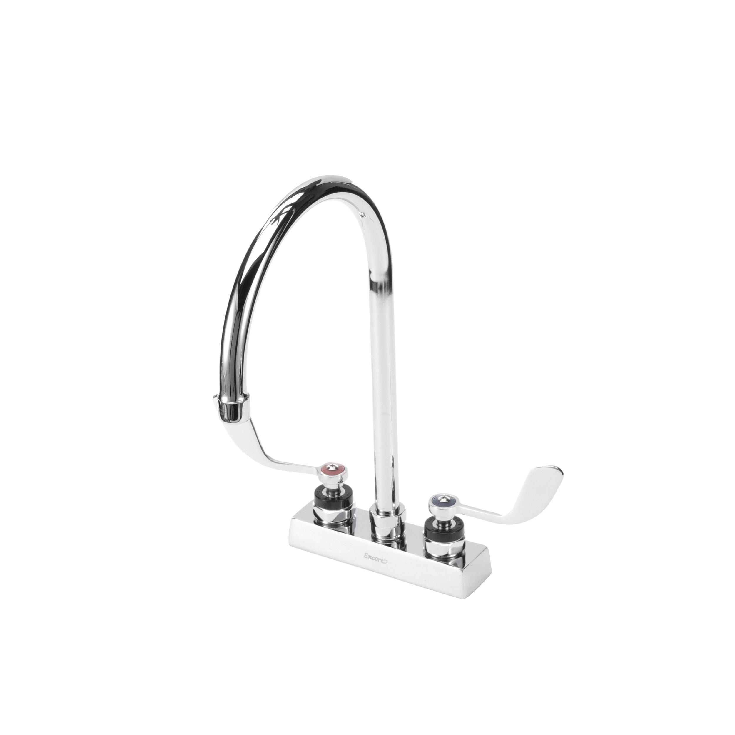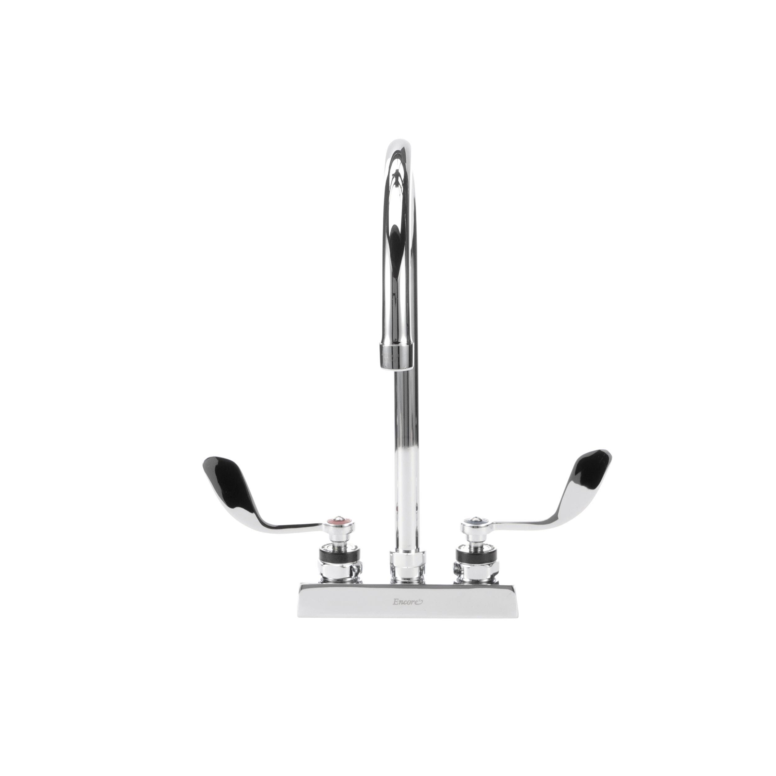 Encore 4" OC Deck Mount Faucet Ceramic Valves with 8-1/2" Swivel Gooseneck Spout with 4" Wrist Blade Handles