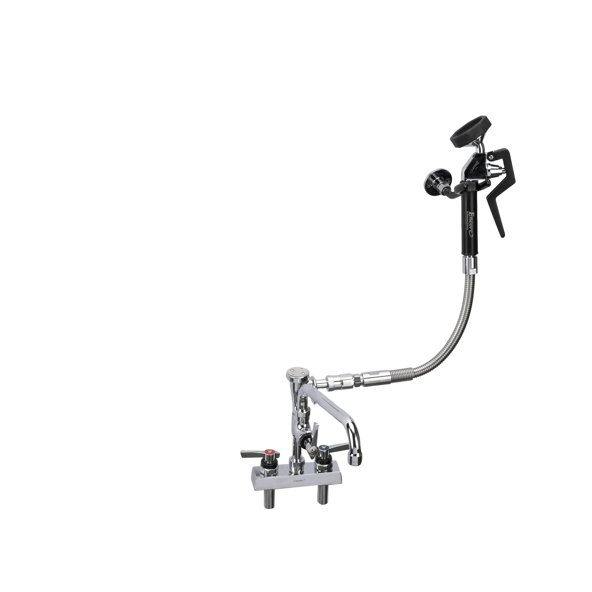 Utility Spray, deck mount, 4" (102mm) O.C., 10" (356mm) swivel stainless steel tubular swing spout